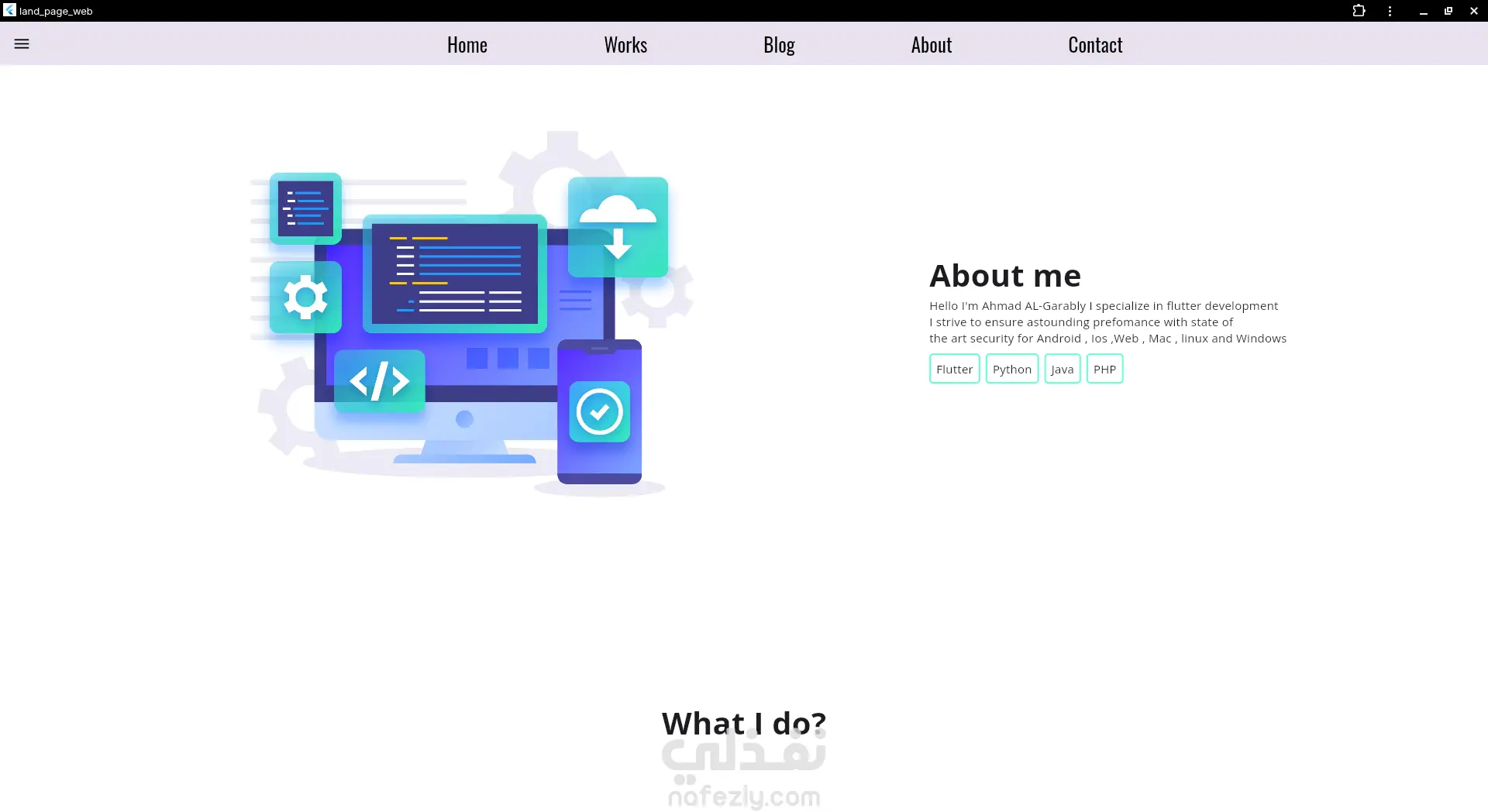 ذا المشروع عبارة عن تصميم صفحة هبوط (Landing Page) بشكل احترافي وعصري، تم تنفيذها باستخدام Flutter خلال فترة تدريبي. تم التركيز في التصميم على: واجهة مستخدم جذابة وسهلة الاستخدام توافق كامل مع مختلف قياسات الشاشات تنظيم المحتوى بطريقة واضحة تحسن تجربة المستخدم تحقيق انسيابية في التنقل داخل الصفحة يعتبر هذا المشروع واحدًا من أصغر الأعمال التي قمت بإنجازها، حيث إن المشاريع الكبيرة والمتقدمة لا يتم عرضها إلا للعملاء فقط حفاظًا على خصوصيتها ومستوى تميزها. على الرغم من بساطته، يعكس هذا العمل مستوى الجودة والدقة التي أحرص عليها في جميع مشاريعي.