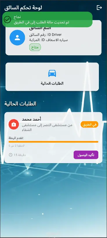 PathAid هو نظام متكامل لإدارة عمليات نقل المرضى بين المرافق الصحية، تم تصميم واجهته الأمامية باستخدام Flutter ليعمل بسلاسة على الهواتف والأجهزة اللوحية والويب، مع واجهة مستخدم عربية سهلة الاستخدام. يهدف النظام إلى حل مشكلة التنسيق المبعثر بين الجهات الطبية ومنع ازدواجية تخصيص سيارات الإسعاف، من خلال منصة مركزية موحدة لتسجيل الطلبات، تخصيص المركبات، وتتبع حالة النقل لحظة بلحظة. المزايا والخصائص شاشة تسجيل الدخول تسجيل الدخول عبر اسم المستخدم وكلمة المرور الصلاحيات تختلف تلقائياً حسب الدور حماية الدخول عبر نظام مصادقة JWT الأدوار والشاشات 1. المدير (Admin) لوحة إدارية شاملة تشمل: إدارة المستخدمين (إضافة – تعديل – حذف – متابعة) إدارة المركبات الموافقة على طلبات إضافة مرافق صحية جديدة الموافقة على طلبات إضافة سيارات إسعاف مراقبة النظام بشكل كامل 2. المنسق (Dispatcher) لوحة تشغيل مباشرة لعمليات النقل: استلام طلبات النقل من المنشآت الصحية قبول الطلب أو رفضه مع توضيح السبب تخصيص السيارة المناسبة للرحلة متابعة حالة السيارات تقديم طلب إضافة منشأة صحية جديدة لاعتمادها 3. طاقم سيارة الإسعاف (Crew) تطبيق ميداني بسيط وسريع يتيح: استلام الطلبات المرسلة من المنسق الموافقة على المهمة تحديث حالة الطلب خطوة بخطوة: مستلم في الطريق الوصول للمرفق الصحي التوجه للوجهة إتمام الرحلة 4. المنشأة الصحية (Clinic / المرسل) واجهة مخصصة للطبيب أو مقدم الخدمة: إنشاء طلب نقل جديد وإرفاق بيانات المريض متابعة حالة الطلب لحظة بلحظة إمكانية إلغاء الطلب إذا تطلب الأمر التقنيات المستخدمة Flutter: لتطوير واجهة أمامية متجاوبة تعمل على Android و iOS والويب REST API عبر Spring Boot (في الواجهة الخلفية) دعم كامل للغة العربية تصميم انسيابي وتجربة استخدام سهلة ومباشرة هذا المشروع تم تنفيذه خلال فترة التدريب، ورغم كونه من أعمالي المتوسطة الحجم، إلا أنه يعكس مستوى العمق في تحليل المتطلبات وتنفيذ الأنظمة متعددة الأدوار والمهام. المشاريع الأكبر والأكثر شمولية لا تعرض إلا للعملاء فقط حفاظاً على خصوصيتها.