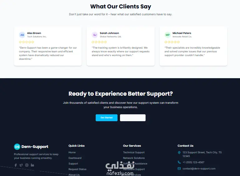 Dern Support ERP هو نظام لإدارة عمليات الدعم الفني داخل الشركات، مع صفحة هبوط احترافية ومتجاوبة.