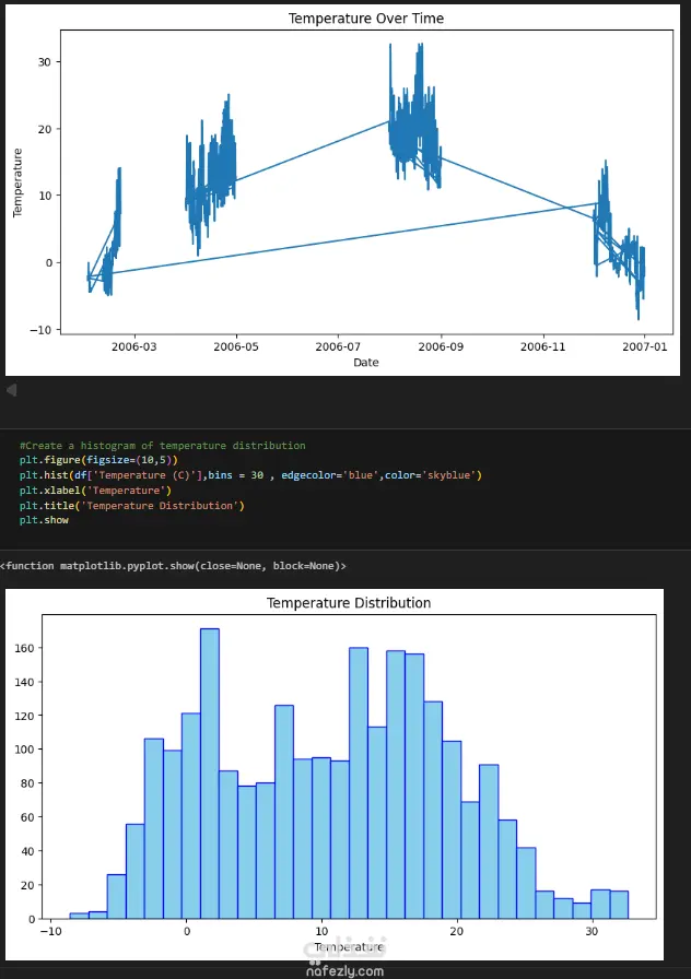 Create a histogram of temperature distribution