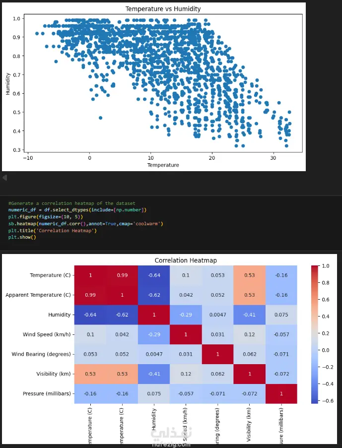 Plot a scatter plot of temperature vs. humidity
