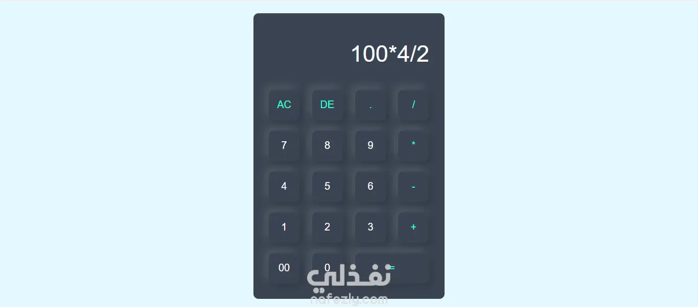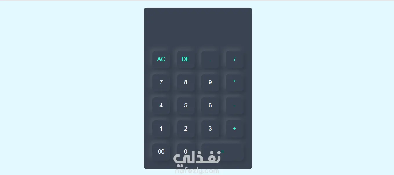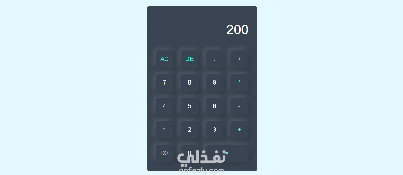 اله حاسبة يمكن يستخدمها المستخدم بعمل عمليات حسابية ضرب وقسمة وجمع وطرح ومسح العمليات السابقة والبدء من جديد واذا اخطأت في كتابة رقم يمكنك التحكم في مسحه واضافة زر الصفرين لتوفير الوقت في كتابة رقم يحتوي علي اصفار كثيرة وهذا اختياري.