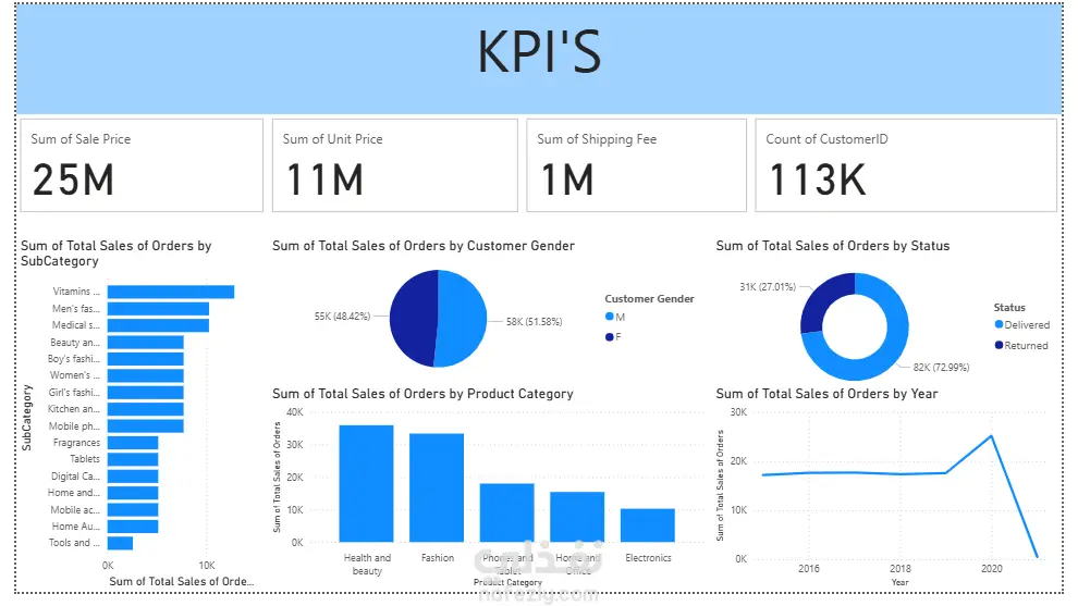 قمت بتصميم داشبورد مبيعات كامل باستخدام Power BI ضمن تدريبي في برنامج رواد مصر الرقميون التابع لوزارة الاتصالات.