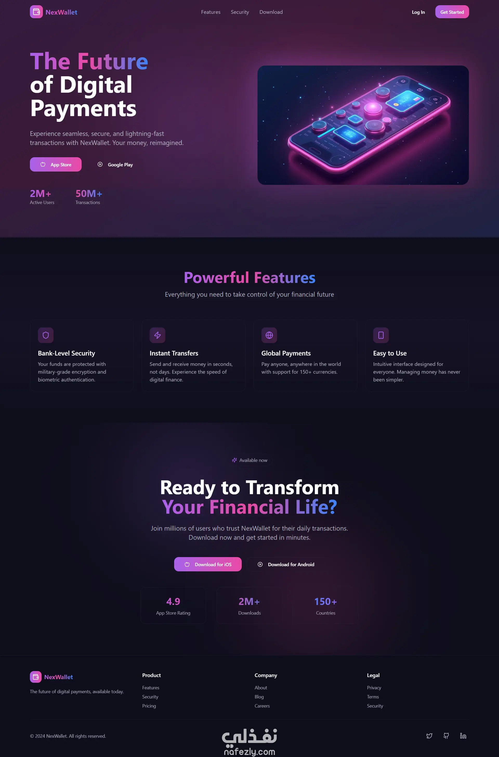 صفحة هبوط (landing page) لتطبيق محفظة رقمية NextWallet