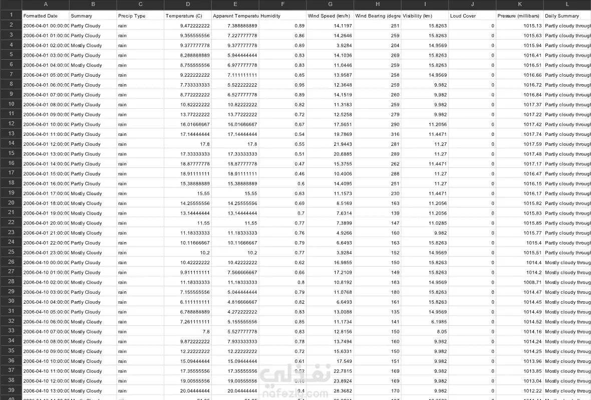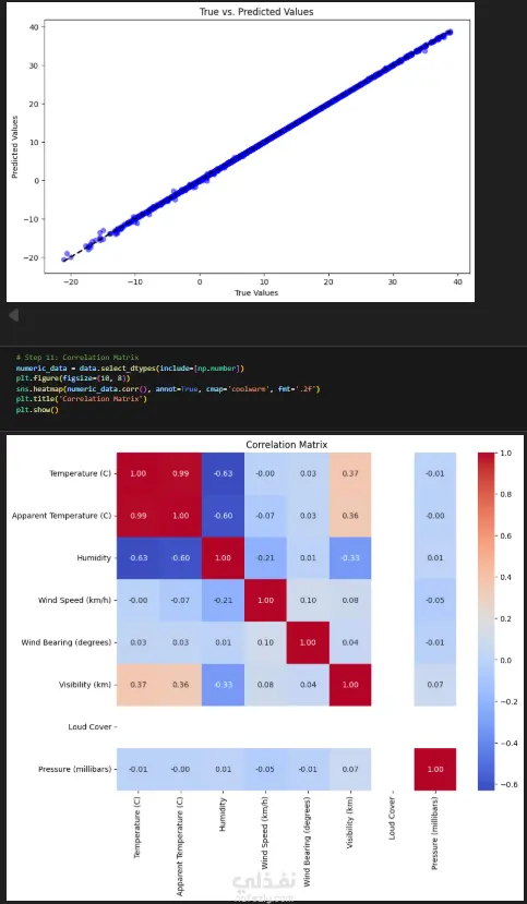 The task is a supervised learning problem, where features such as temperature, humidity, and wind speed are analyzed for their relationships with the target weather variables. The dataset must be preprocessed through steps like handling missing values, feature scaling, and data splitting to prepare it for modeling. Different regression algorithms are applied, and their performance is compared using evaluation metrics such as Mean Absolute Error (MAE), Mean Squared Error (MSE), and R² score to select the best model. Finally, the model’s predictions are visualized against the true values to assess accuracy and reliability.