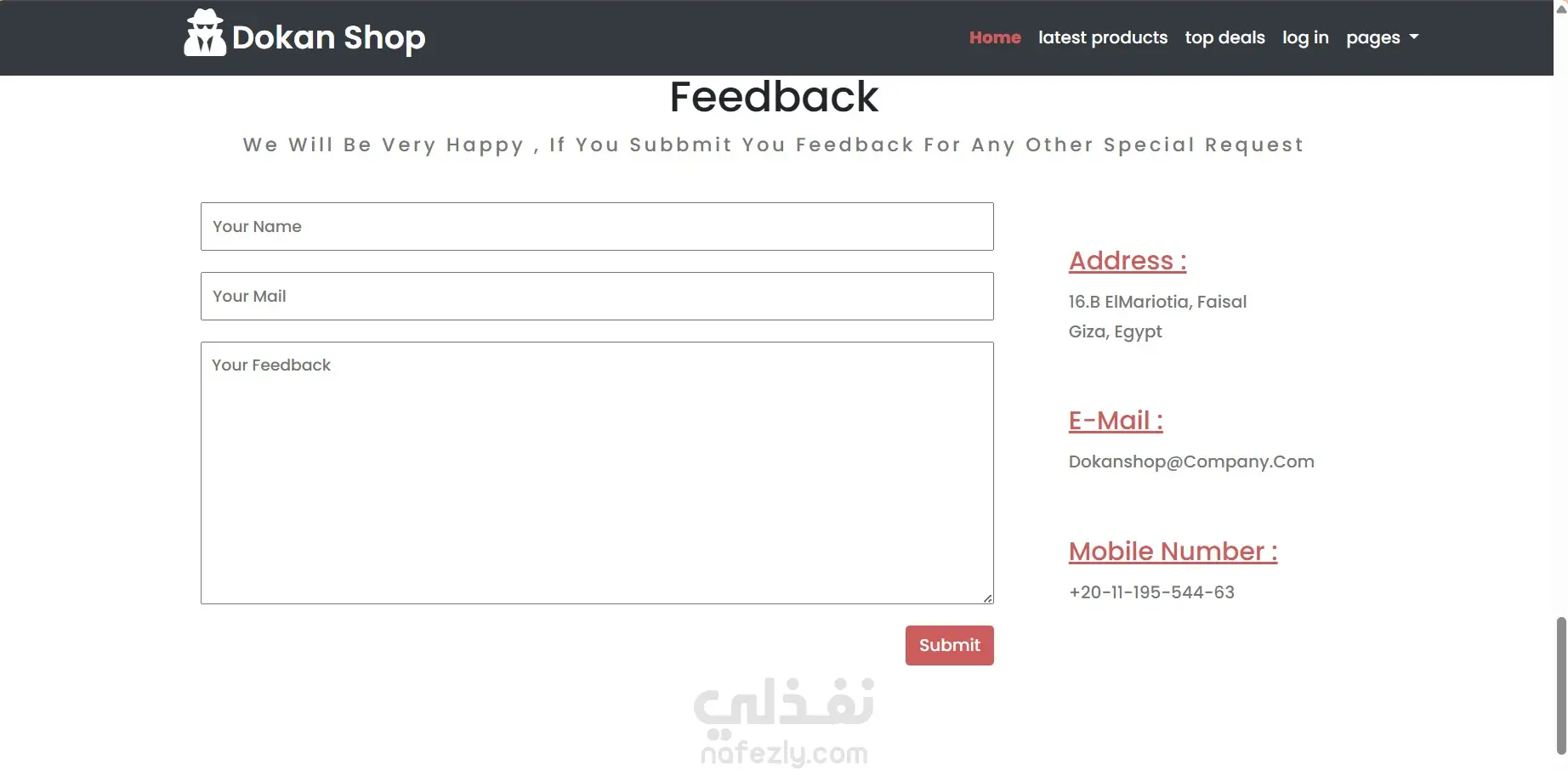 5. صفحة Contact Us تحتوي على نموذج تواصل وخريطة Google