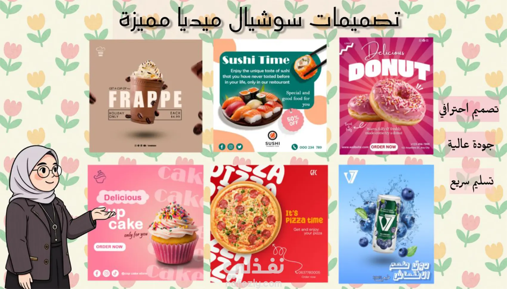 تصميم بوستات بجودة عالية ومتناسقة مع هوية البراند بحد أقصى يومان من استلام كل التفاصيل تسليم الملفات بصيغ PSD (لإمكانية التعديل) + PNG + JPG + PDF استخدام برنامج photoshop و illustrator يفضّل إرفاق كافة المعلومات المطلوبة للتصميم + الشعار (Logo) لضمان تنفيذ العمل بالشكل المناسب