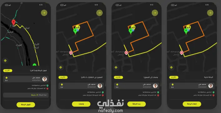 يتيح التطبيق للراكب إرسال طلب وتحديد السعر، بينما يمكن للسائقين تقديم عروضهم والمنافسة عليها. بعد قبول الراكب لأحد السائقين، تتم عملية التواصل والتسليم بالكامل داخل التطبيق.