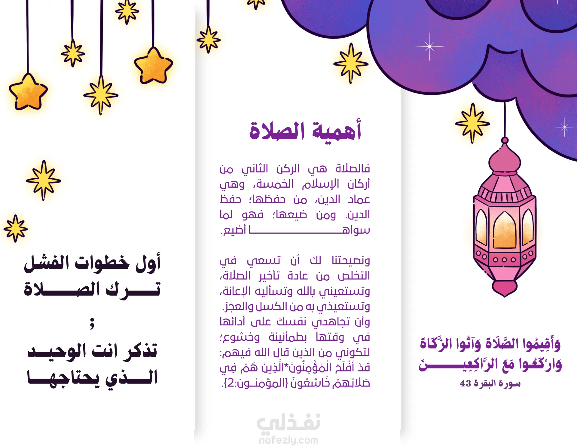 تصميم منشور توعوي جذاب يسلّط الضوء على أهمية الصلاة بأسلوب بصري راقٍ وهادئ يناسب المحتوى الديني.