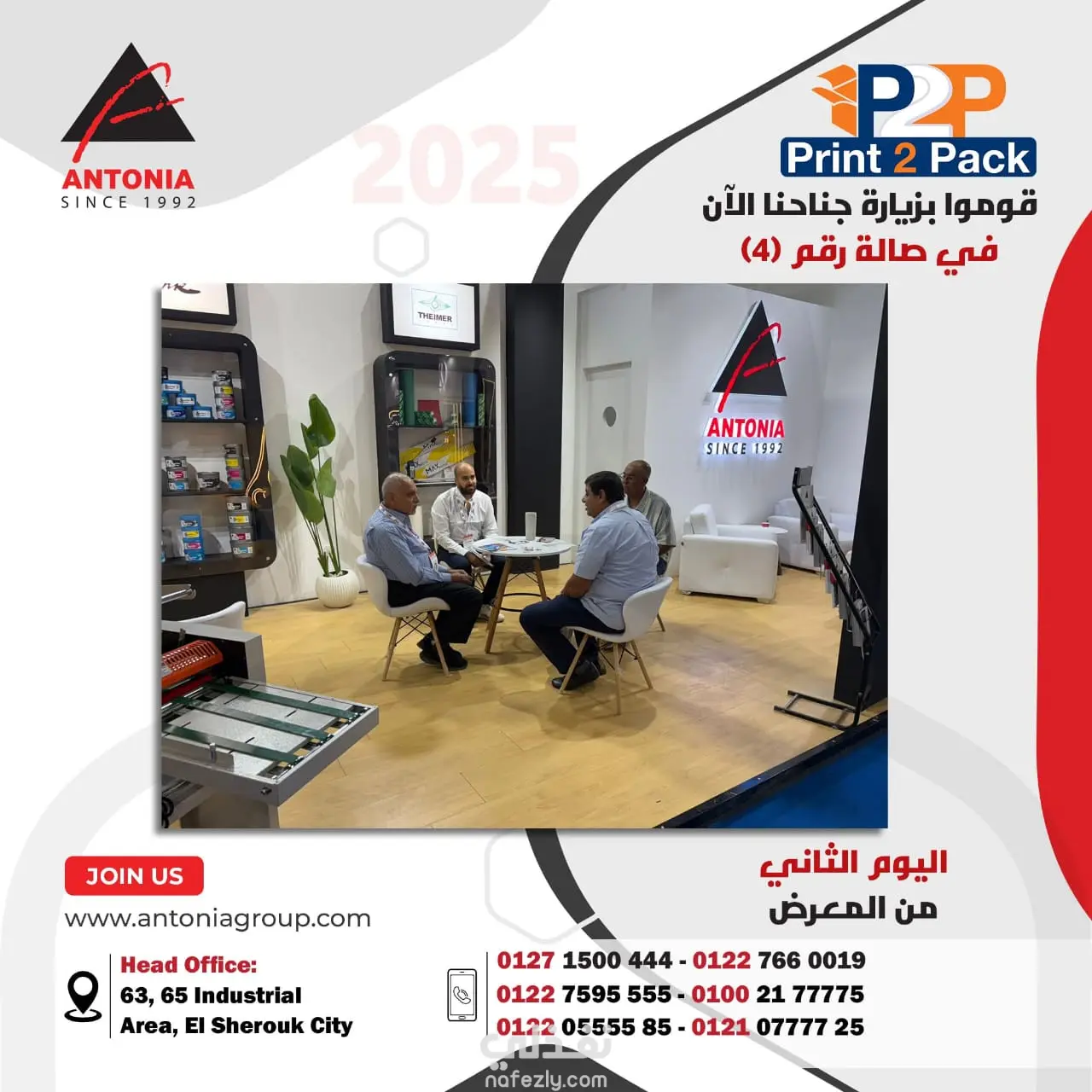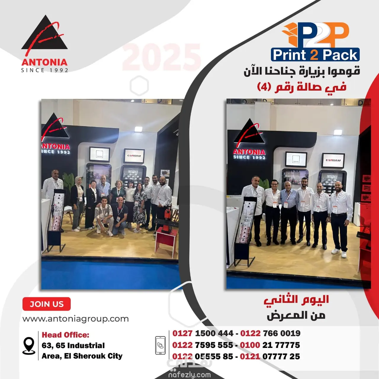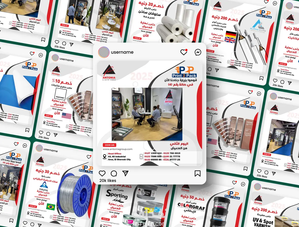 مجموعة تصاميم ترويجية مُعدة للإعلان عن عروض وخصومات الشركة خلال فترة المعرض.