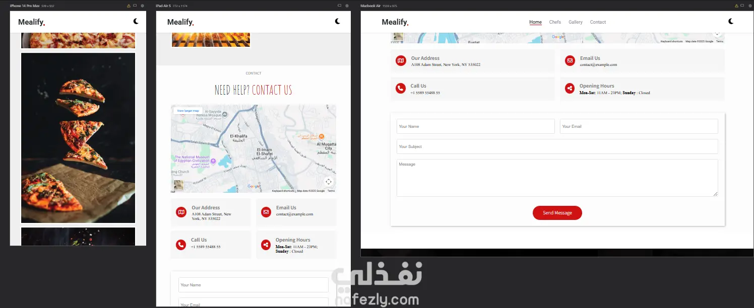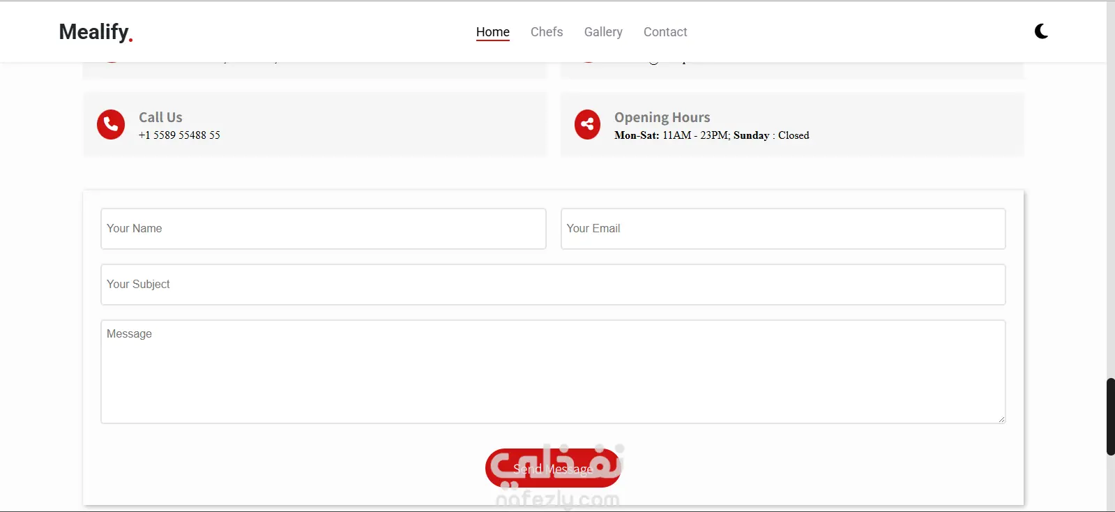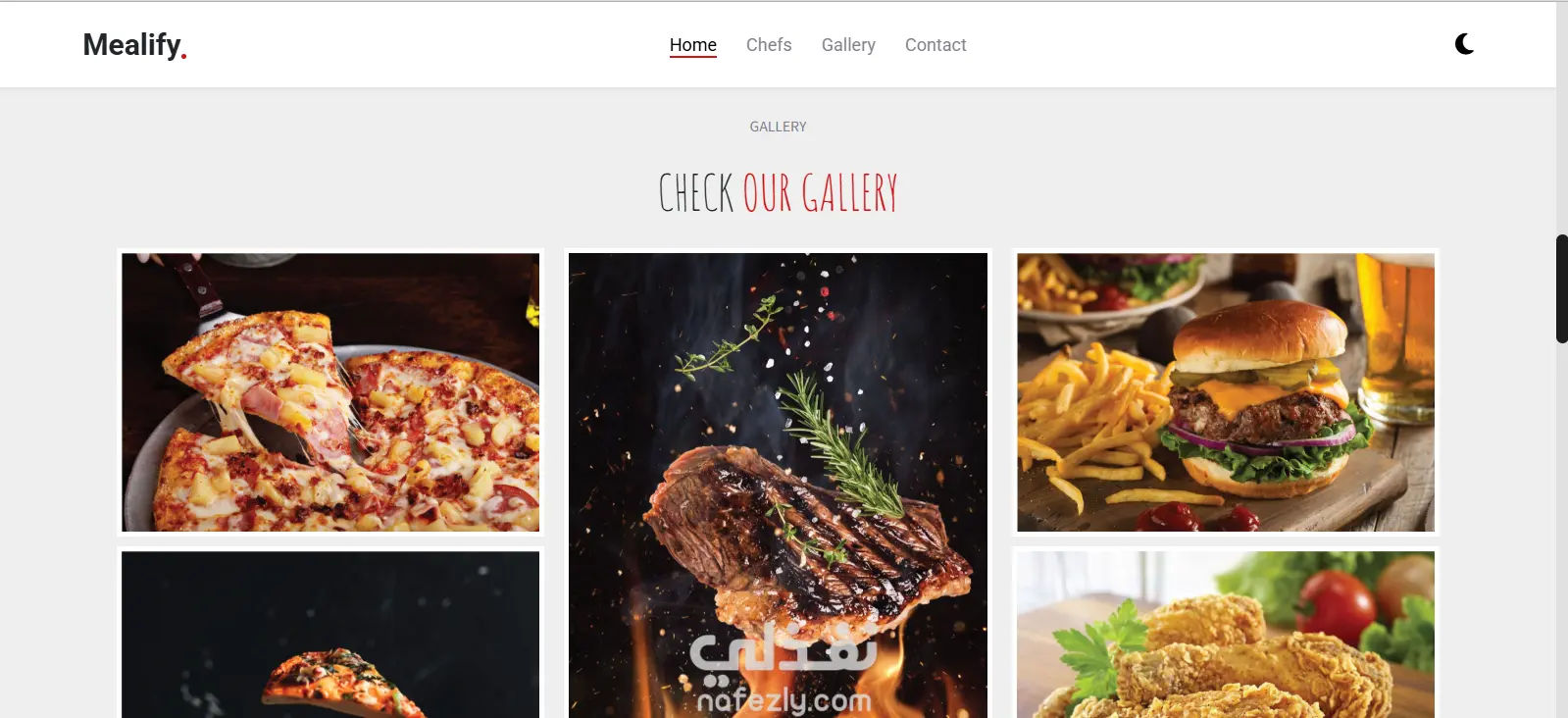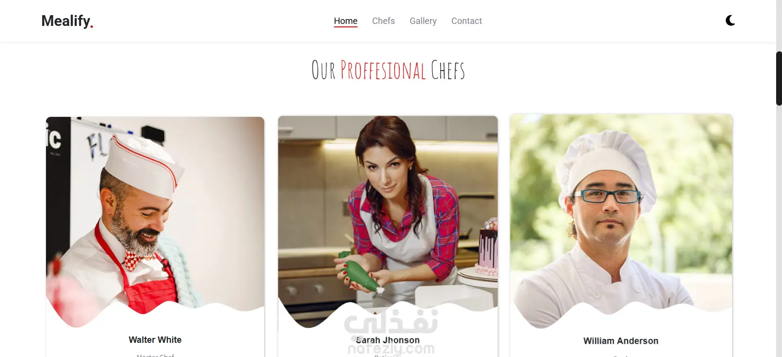 تطوير Landing page لمطعم بها اقسام home,chefs,gallery,contact us
