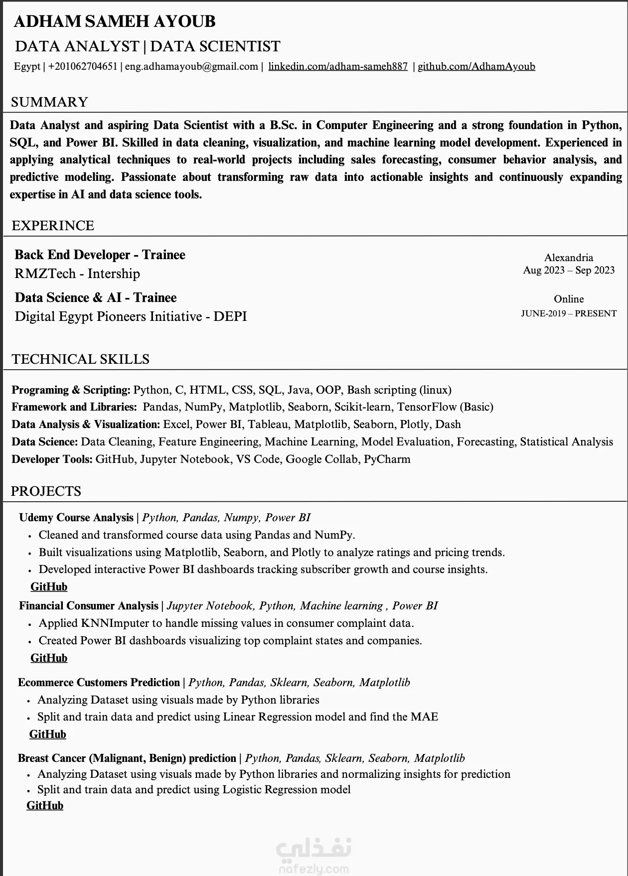 بتبعت سيفيهات كتير ومحدّش بيرد؟ غالبًا مش المشكلة فيك… المشكلة إن الـ ATS بيرفض الـ CV قبل ما يوصل لحد من الـ HR أصلاً. الأنظمة دي بتفلتر كل حاجة، وأي CV مش معمول بحساب… مع السلامة 👋 وهي دي اللحظة اللي أنا بدخل فيها: 🔹 إيه اللي هعملهولك؟ CV مزبوط على معايير الـ ATS من أول كلمة لآخر فاصلة. صياغة احترافية بالإنجليزي أو العربي—زي ما تحب. تنسيق نظيف وبسيط يخلي السيستم يبتسم بدل ما ينهار. Keywords مناسبة لمجالك: IT، محاسبة، HR، Data… أيًا كان طلبك. نسخة PDF + نسخة Word قابلة للتعديل. باختصار: هفكّ الاشتباك بينك وبين الـ ATS… وهأضمن إن الـ HR يشوف شغلك قبل ما السيستم يطرده. 💼🔥