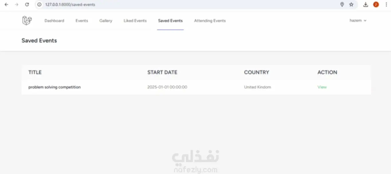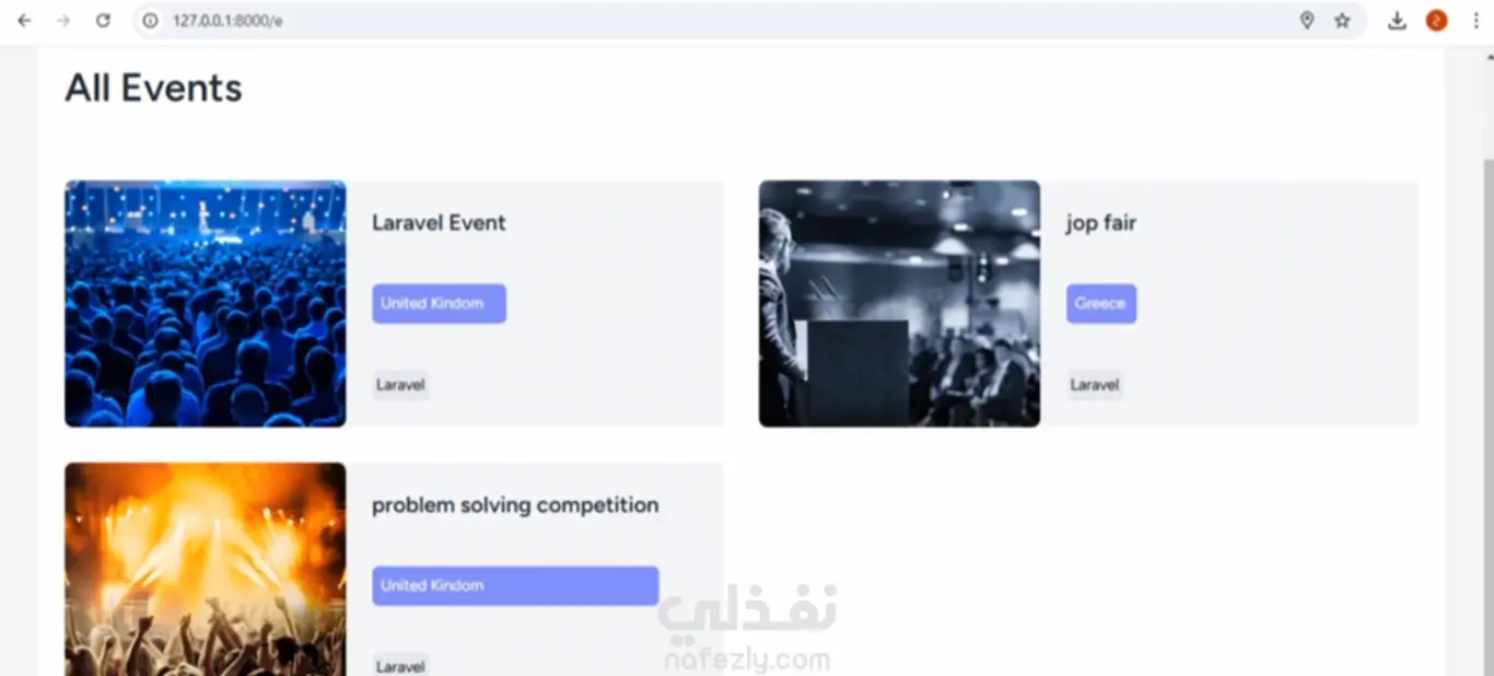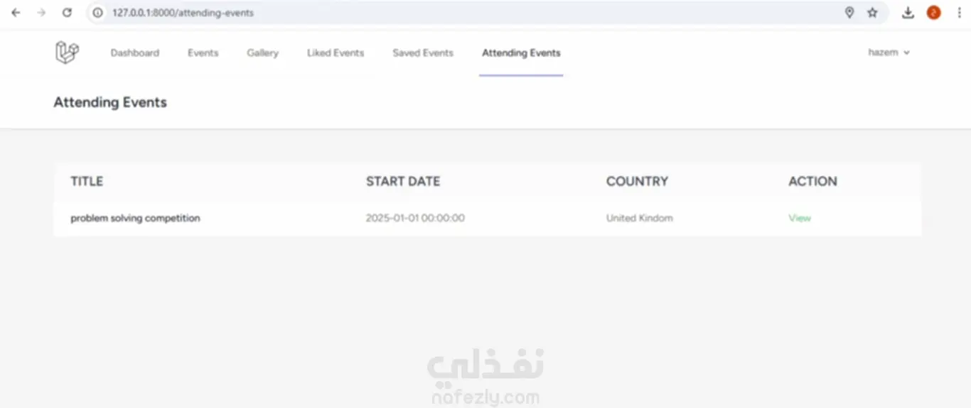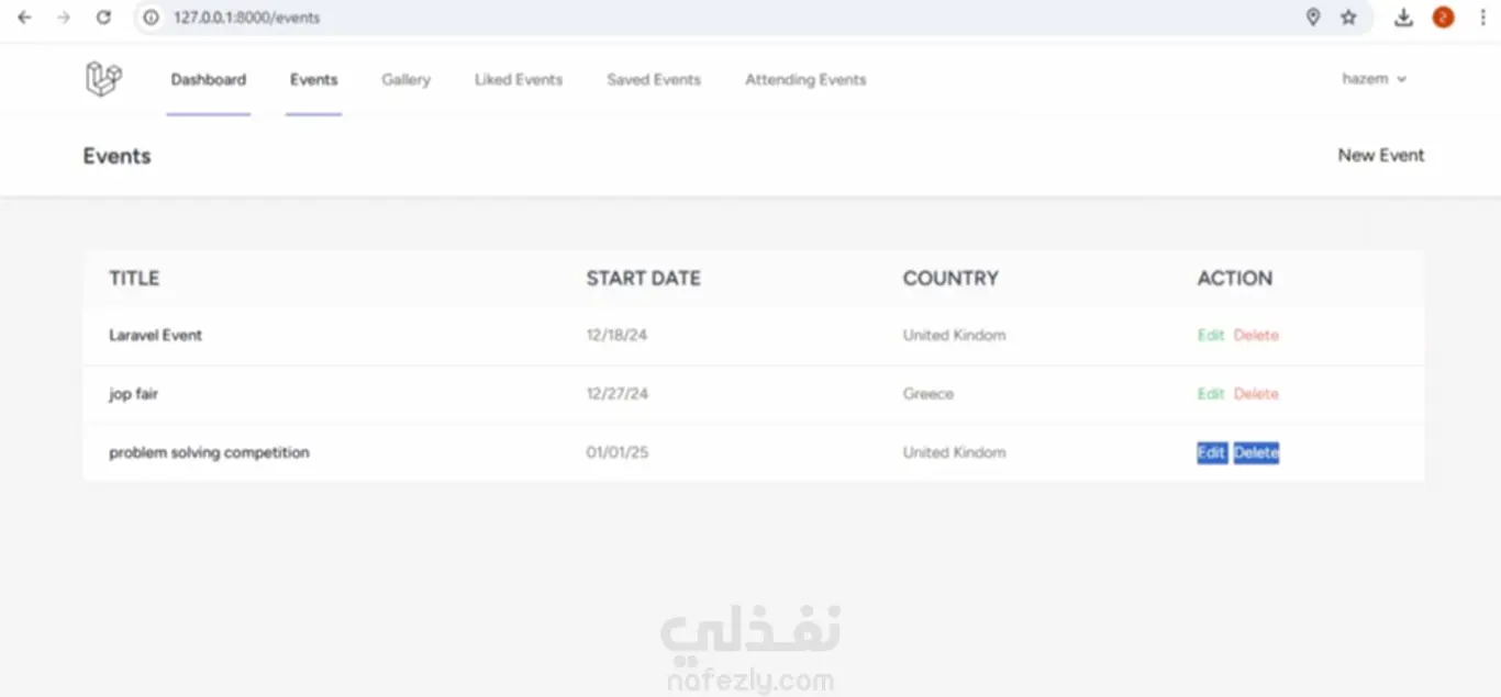 هذا مشروع إدارة فعاليات (Event Management) يتيح للمستخدمين إنشاء الفعاليات ومشاركتها بسهولة، مع إمكانية تخصيص جميع التفاصيل مثل تاريخ البداية والنهاية، الدولة، والمدينة.