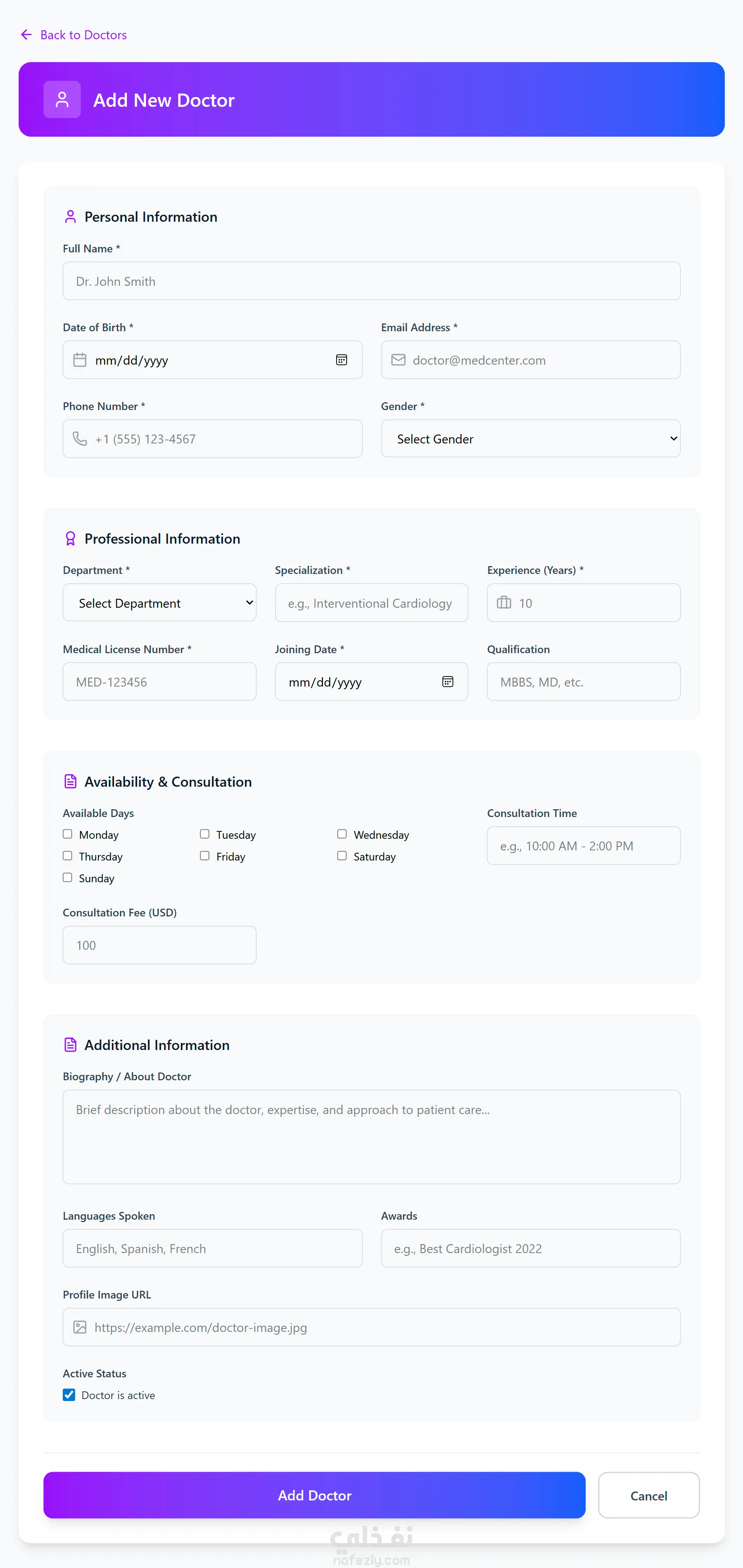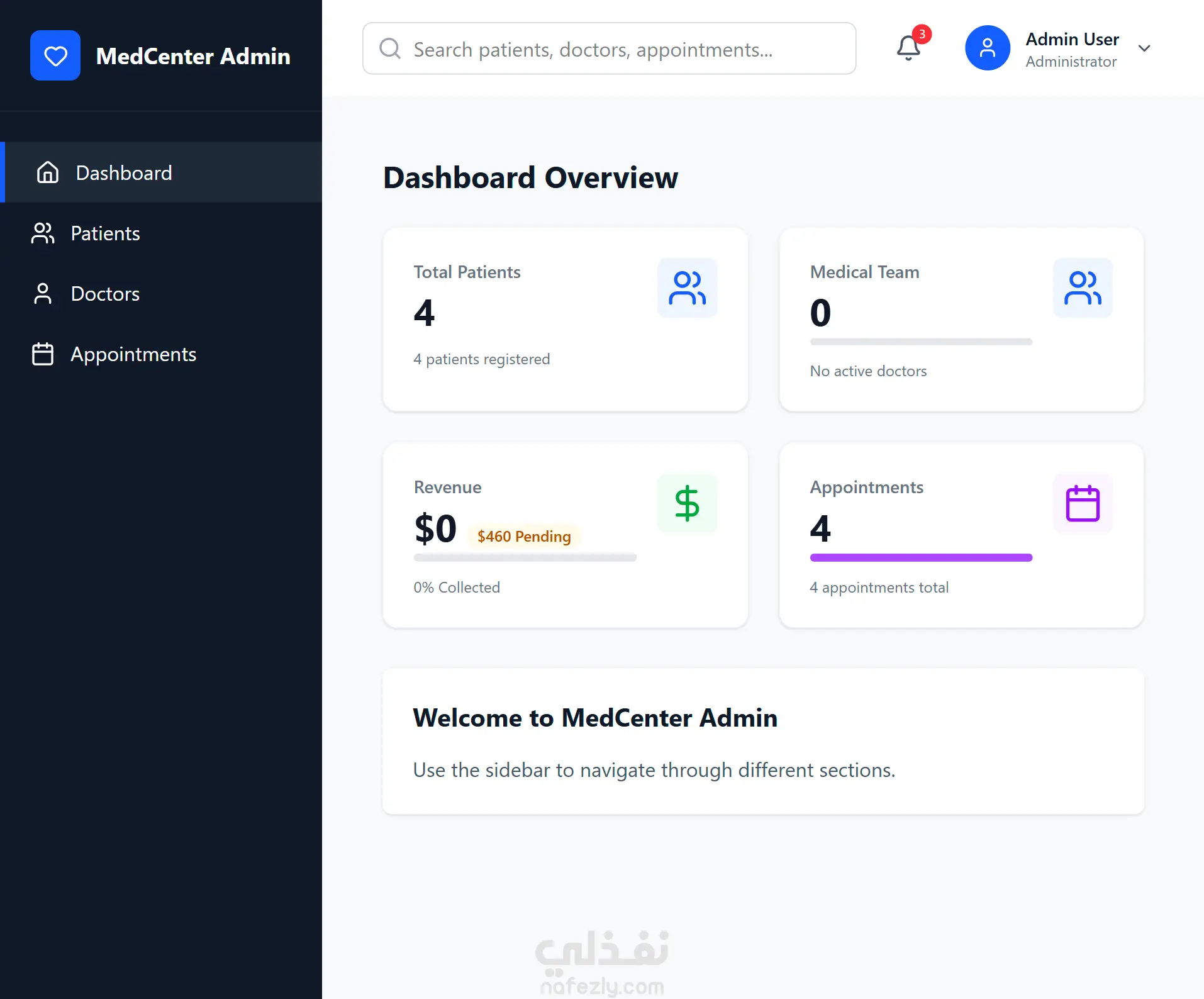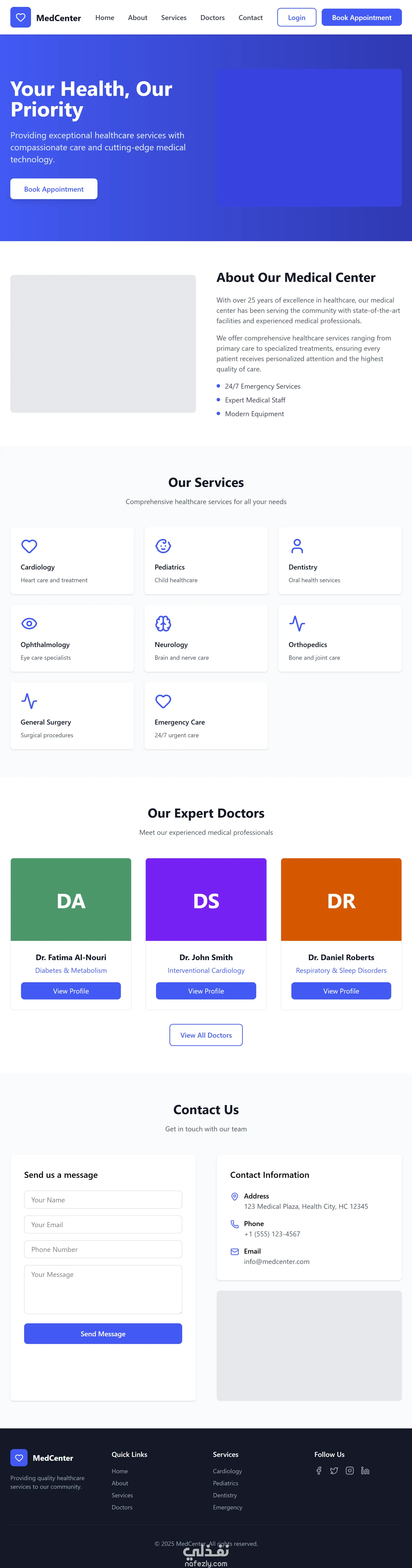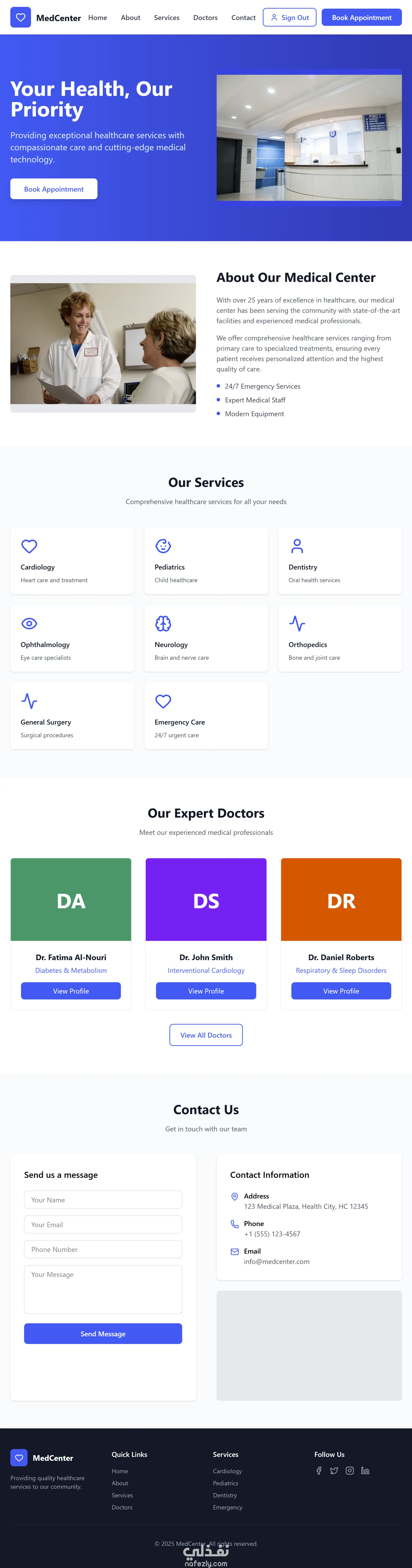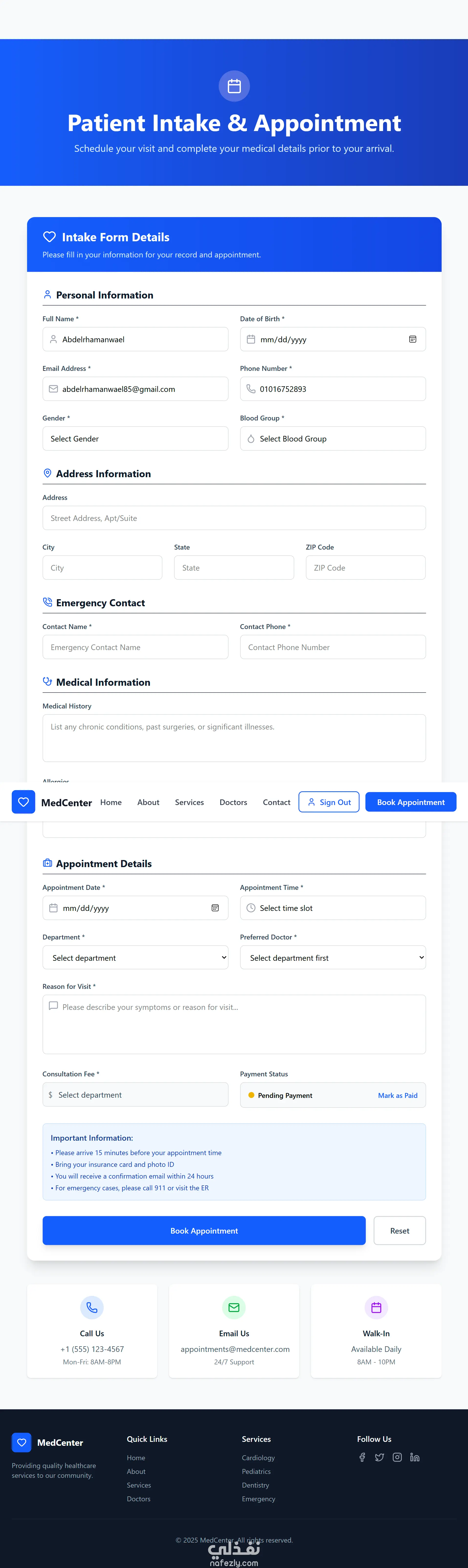 طوّرت موقعًا تعريفيًا لمركز طبي إضافة إلى لوحة تحكم إدارية لإدارة المحتوى (Doctors – Services – Blog). قمت بدمج Firebase لإدارة الحسابات والصلاحيات، مع واجهة سهلة الاستخدام للطبيب والمختص. حجم العمل: موقع تعريفي + Dashboard تسجيل الدخول / تسجيل حساب CRUD كامل للخدمات والأطباء إدارة المحتوى عبر لوحة التحكم تكامل Firebase Authentication & Firestore