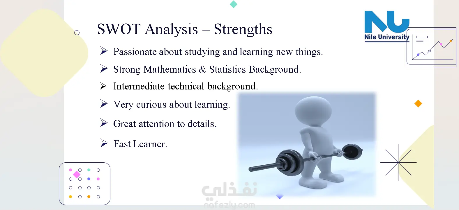 أقدّم خدمات تصميم عروض تقديمية محترفة وجذابة بصريًا تناسب جميع الأغراض الأكاديمية، المهنية، والتسويقية. تشمل الخدمات: تصميم شرائح منظمة وواضحة تسهّل إيصال الأفكار. اختيار ألوان، خطوط، ورسوميات متناسقة لتعزيز جاذبية العرض. إدراج رسوم بيانية (Charts) وجداول لتوضيح البيانات بشكل مرئي. عمل تصاميم متحركة وTransitions بسيطة واحترافية لجعل العرض أكثر تفاعلية. تحويل المحتوى المعقد إلى شرائح سهلة الفهم وجذابة بصريًا. ضمان أن يكون العرض جاهزًا للاستخدام مباشرة وملائم لجميع أنواع الاجتماعات أو العروض التقديمية. باختصار، أقدّم تجربة تصميم شاملة، متميزة، واحترافية تجعل عروضك تترك انطباعًا قويًا لدى الجمهور.