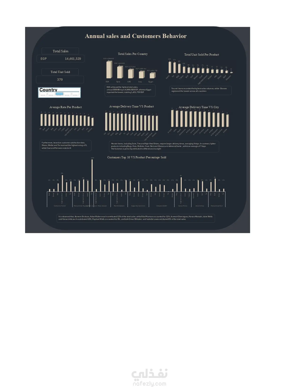 تحليل بيانات المبيعات وسلوك العملاء - تنظيف البيانات ومعالجتها بإستخدام باور كويرى - استخراج أهم مؤشرات الأداء الرئيسية KPIs ( إجمالى عدد الأوردرات - إجمالى عدد المنتجات المباعة ) - استخدام Pivot Table لإستخراج : Total Sales per Country Total Unit per Products Average Delivery Time VS Product Average Rate Per Product Customers Top 10 VS Product Percentage Sold - استخراج توصيات خاصة بالمبيعات مثل أكثر المنتدات والمناطق مبيعاً وأيضا أقلهم مبيعاً وغيرها المشروع يعتمد على بيانات مبيعات حقيقية لغرض التدريب العملى على تحليل البيانات باستخدام أدوات مثل Power Query, Excel بهدف استخراج المؤشرات وتحليل الأداء عبر لوحات تحكم تفاعلية تدعم اتخاذ القرار.