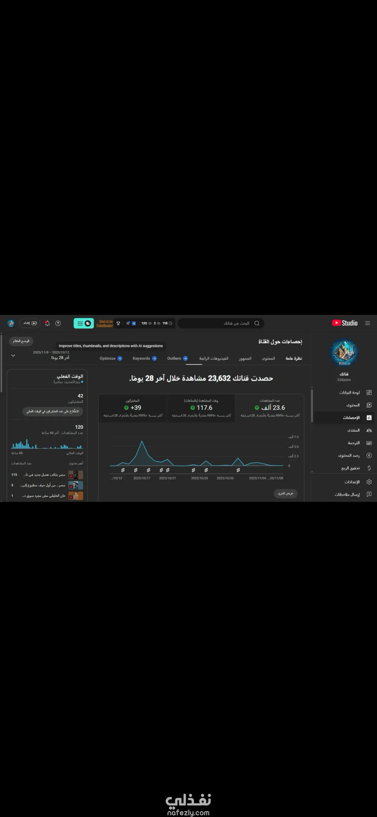 تحليل احترافي لإحصائيات قناة اليوتيوب ووضع خطة تطوير لزيادة المشاهدات