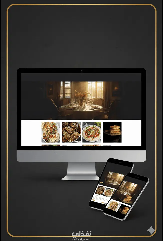 _تعزيز الفخامة: استخدام هوية بصرية تجمع بين الألوان الراقية (الذهبي، الرمادي الداكن، والكريمي) لتعكس جودة المطعم الفاخر (Luxury Dining).