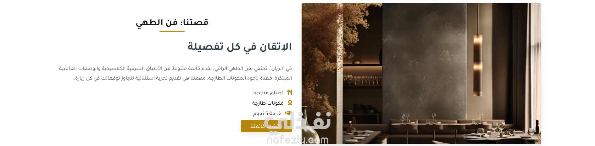 _قسم "قصتنا": التعريف بفلسفة المطعم والجودة في المكونات.