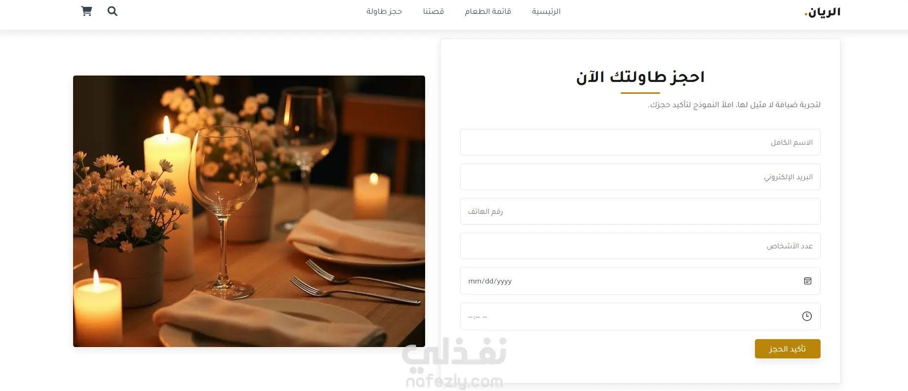 _نموذج الحجز: نموذج تفاعلي ومباشر لتأكيد حجز الطاولة.