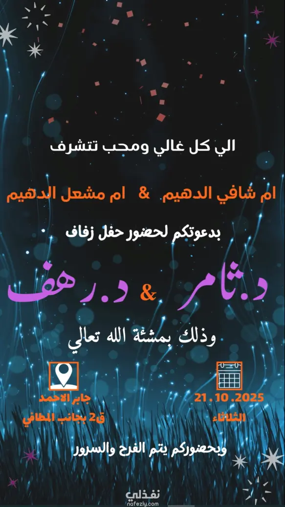 تصميم فيديو لدعوه الزفاف هذا الفيديو يتسم بالبساطه يحتاج فقط الي موسيقي مع تغيير البيانات او تغيير اي شئ التصميم العام