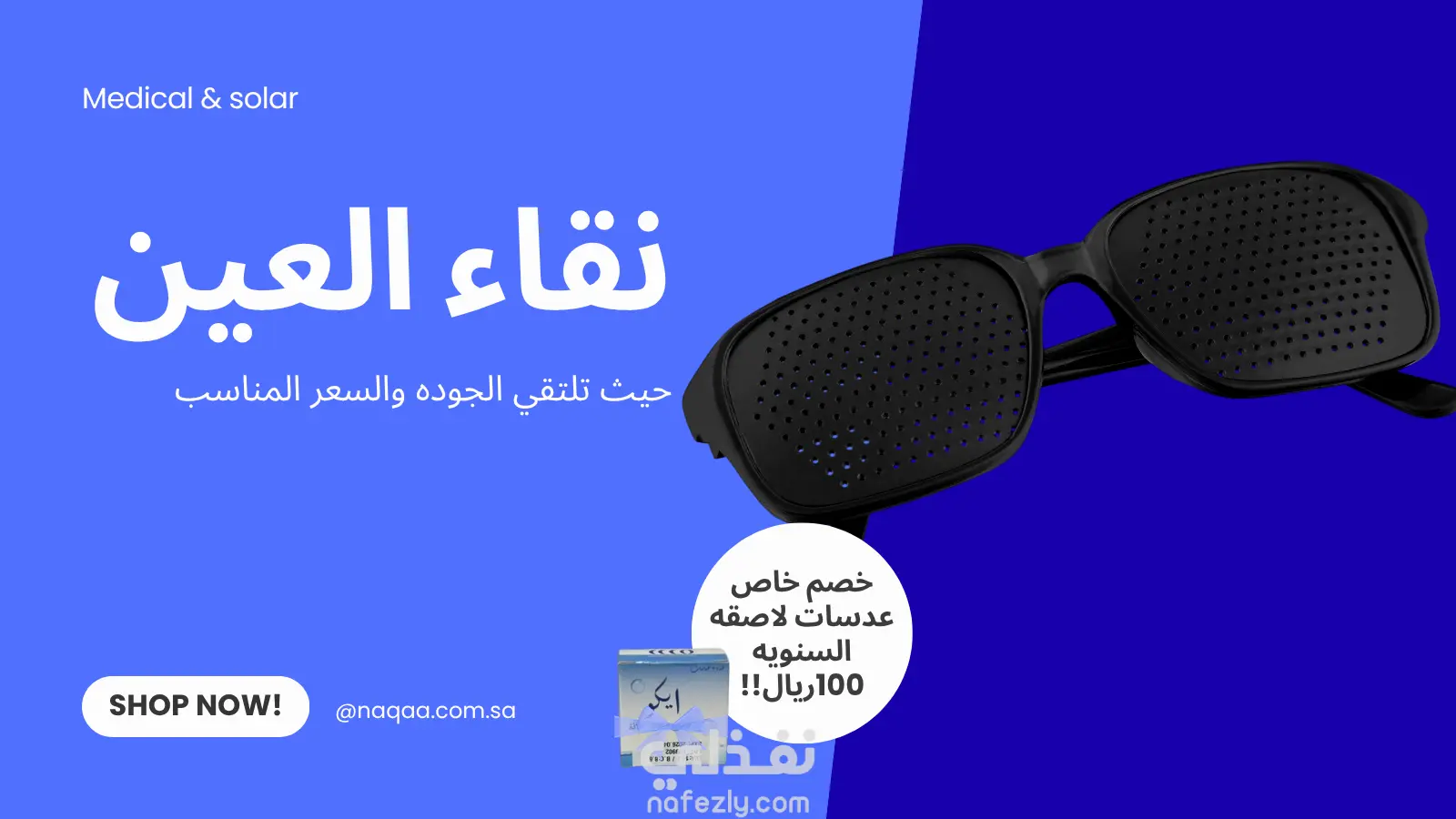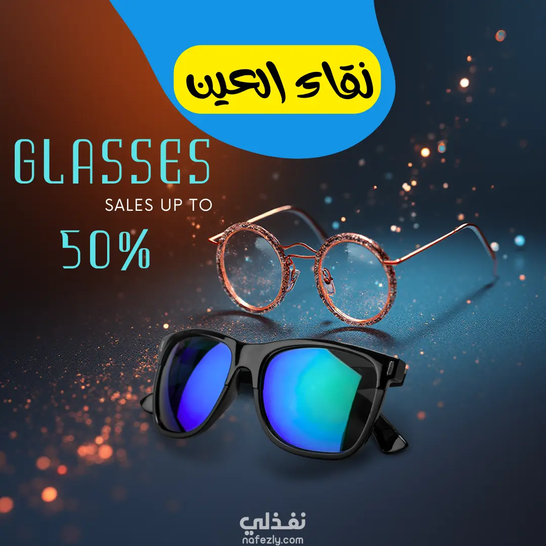تصميم إعلان دعائي احترافي لمتجر نظارات "نقاء العين"،