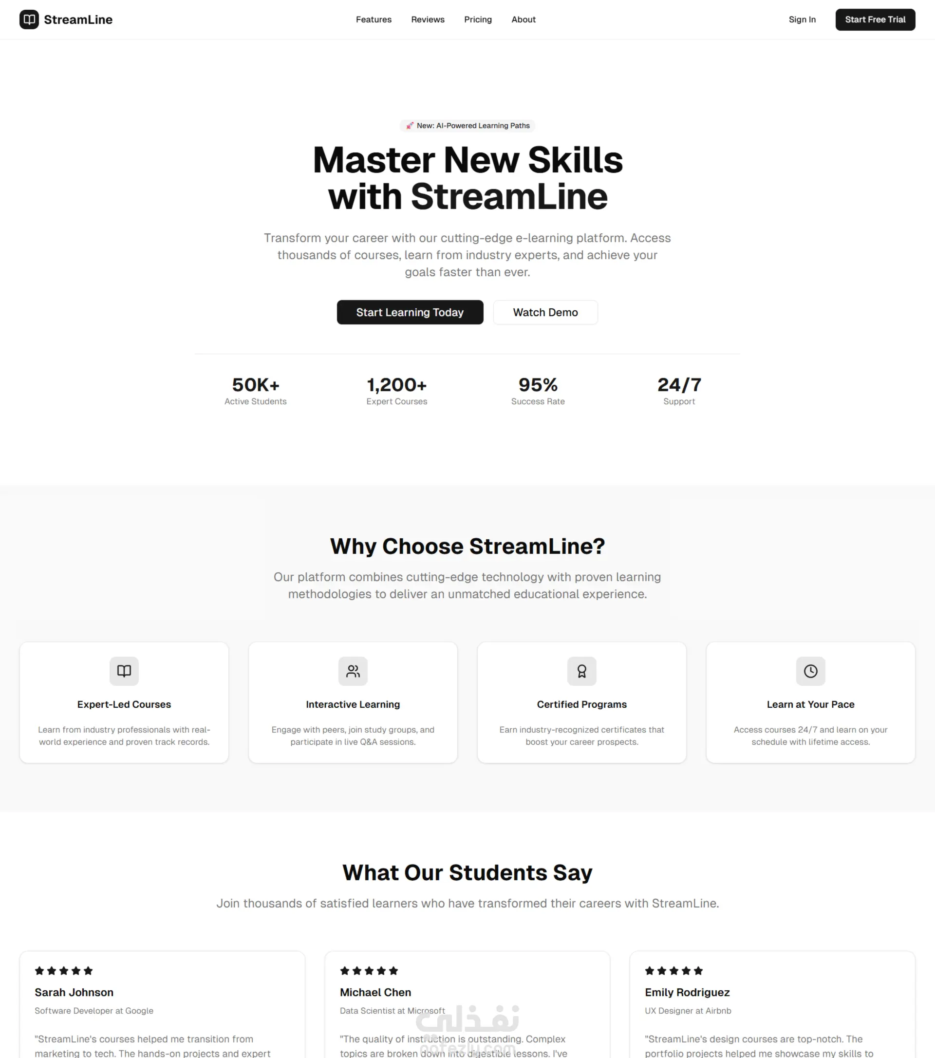 صفحة هبوط لموقع تعليمي | E-Learning Platfrom Landing Page