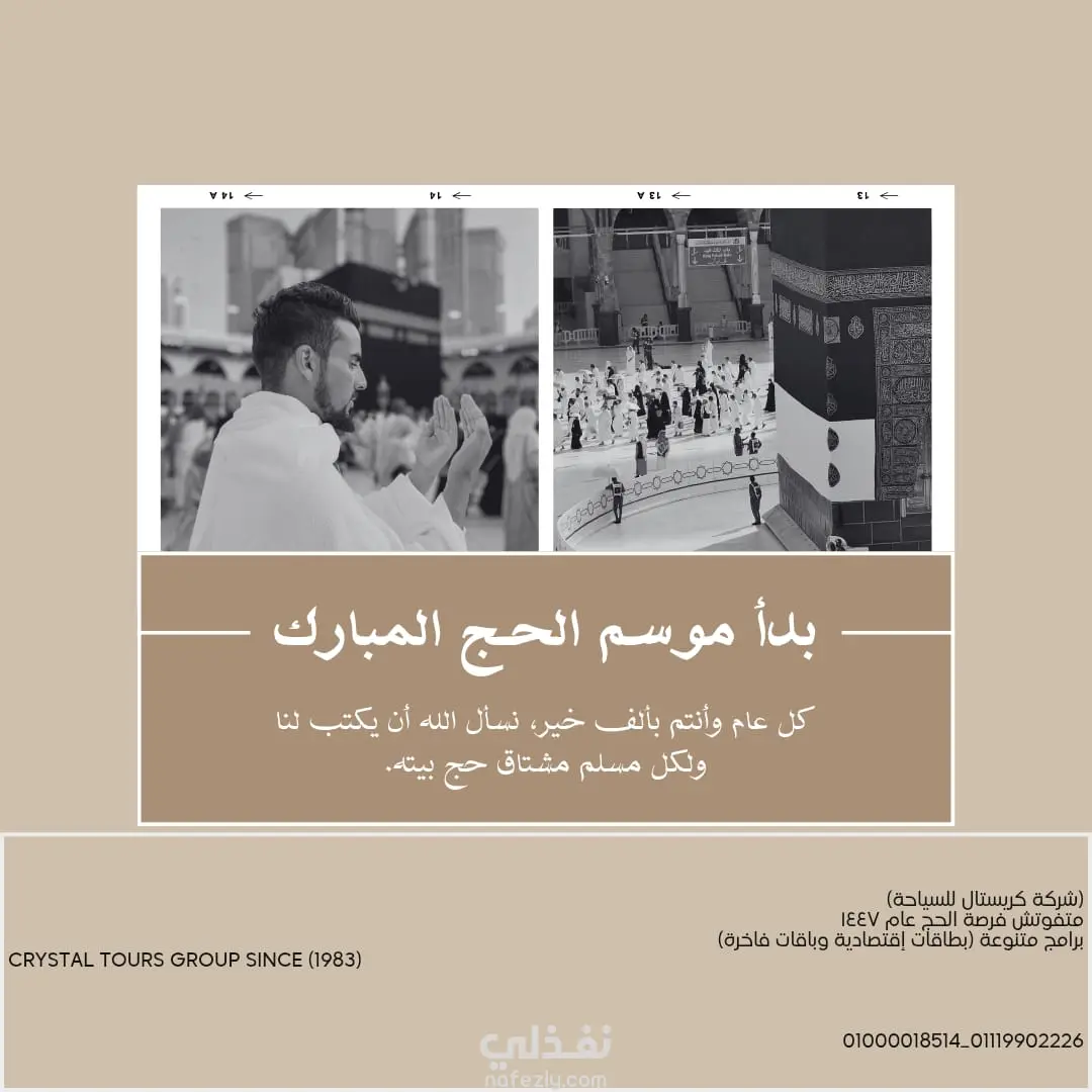 تصميم منشورات واعلانات لشركة كريستال للسياحه عن الحج والعمره