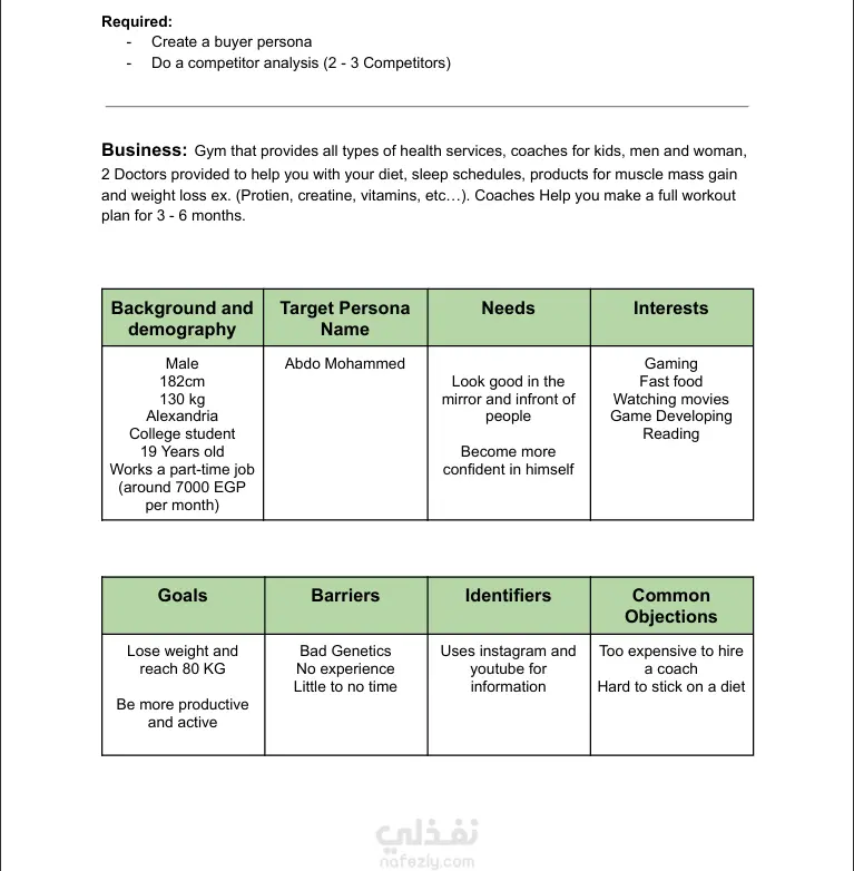 لقد قمت بكتابة الBuyer Persona و الذي يعني أفضل صورة تخيلة تمثل العميل الخاص بك