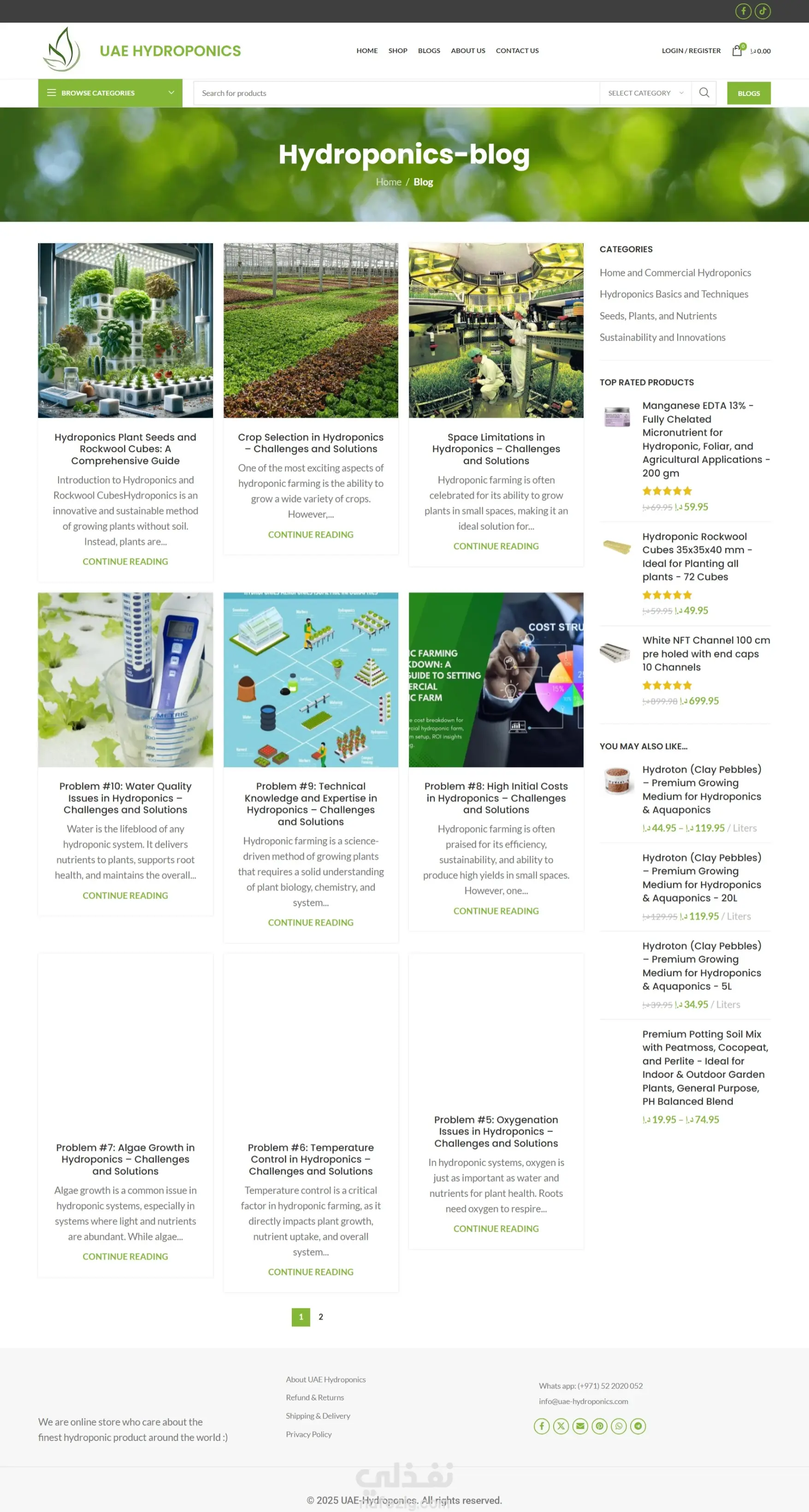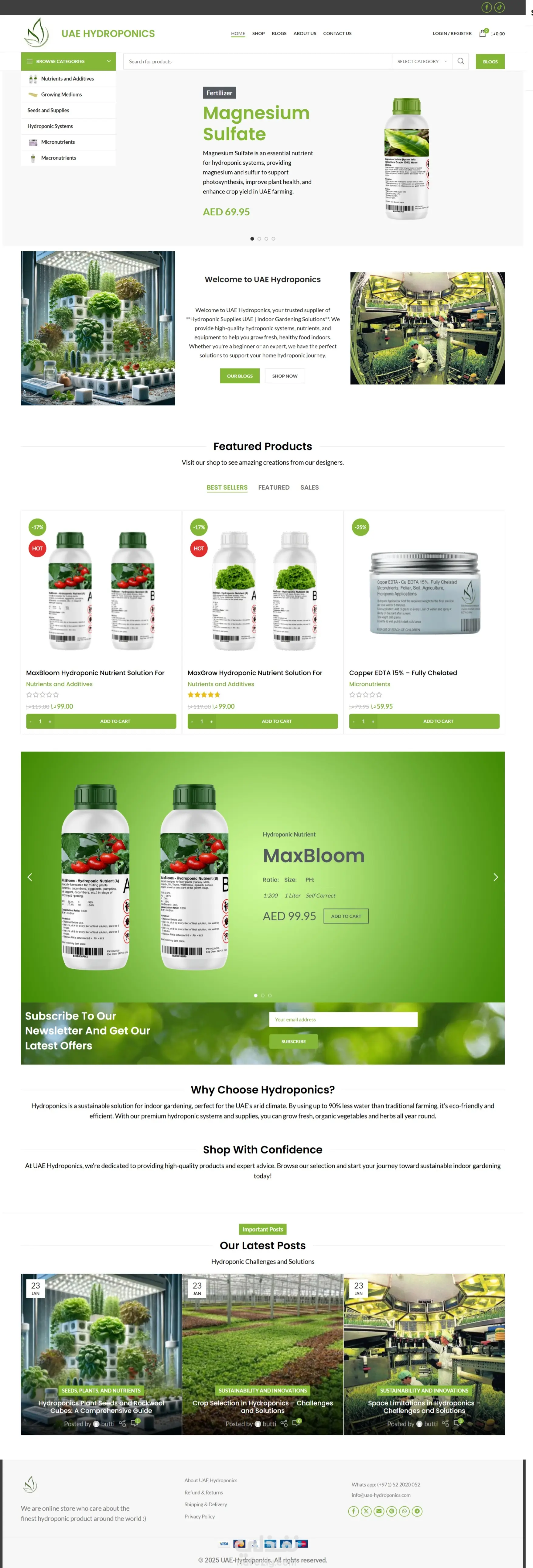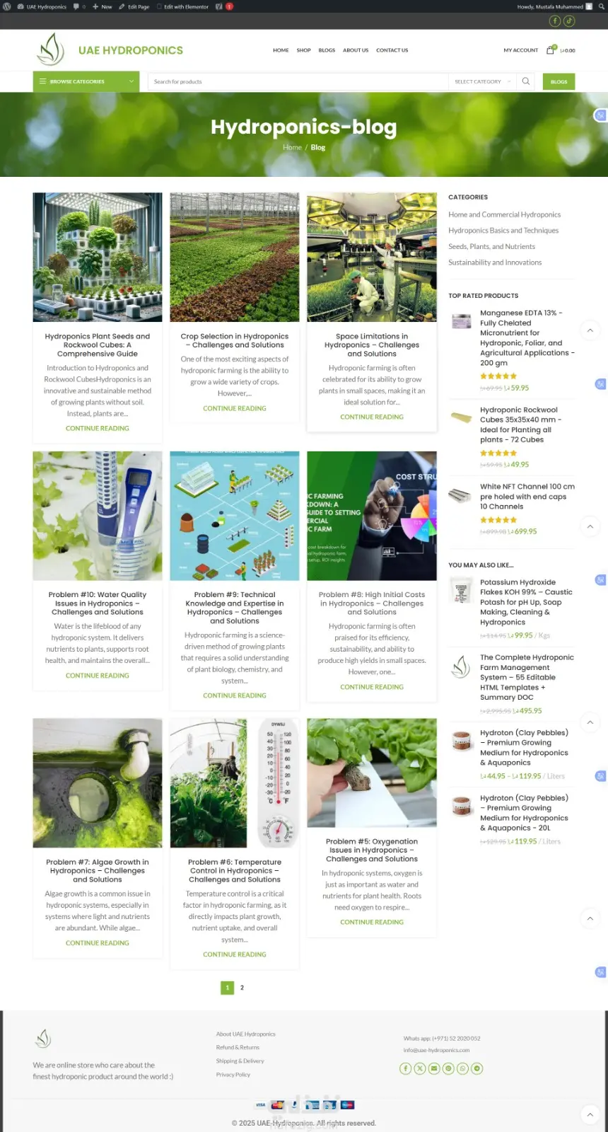 قمت بتطوير وتحسين موقع UAE Hydroponics باستخدام WordPress + WooCommerce مع ضبط وتخصيص قالب WoodMart، وتحسين الأداء والسرعة وتجربة المستخدم. نطاق العمل: -تدقيق إعدادات WooCommerce ومعالجة الأخطاء. -تخصيص قالب WoodMart ليتوافق مع المتجر + المدونة. -تحسين تصميم الصفحة الرئيسية، المنتجات، والتصنيفات. -تحسين الهيدر والفوتر والخطوط. -اختبار عملية الدفع وتجربة المستخدم UX. -ربط المنتجات بالمقالات وتفعيل خصائص التفاعل. -تحسين الأداء والسرعة (Performance Optimization).