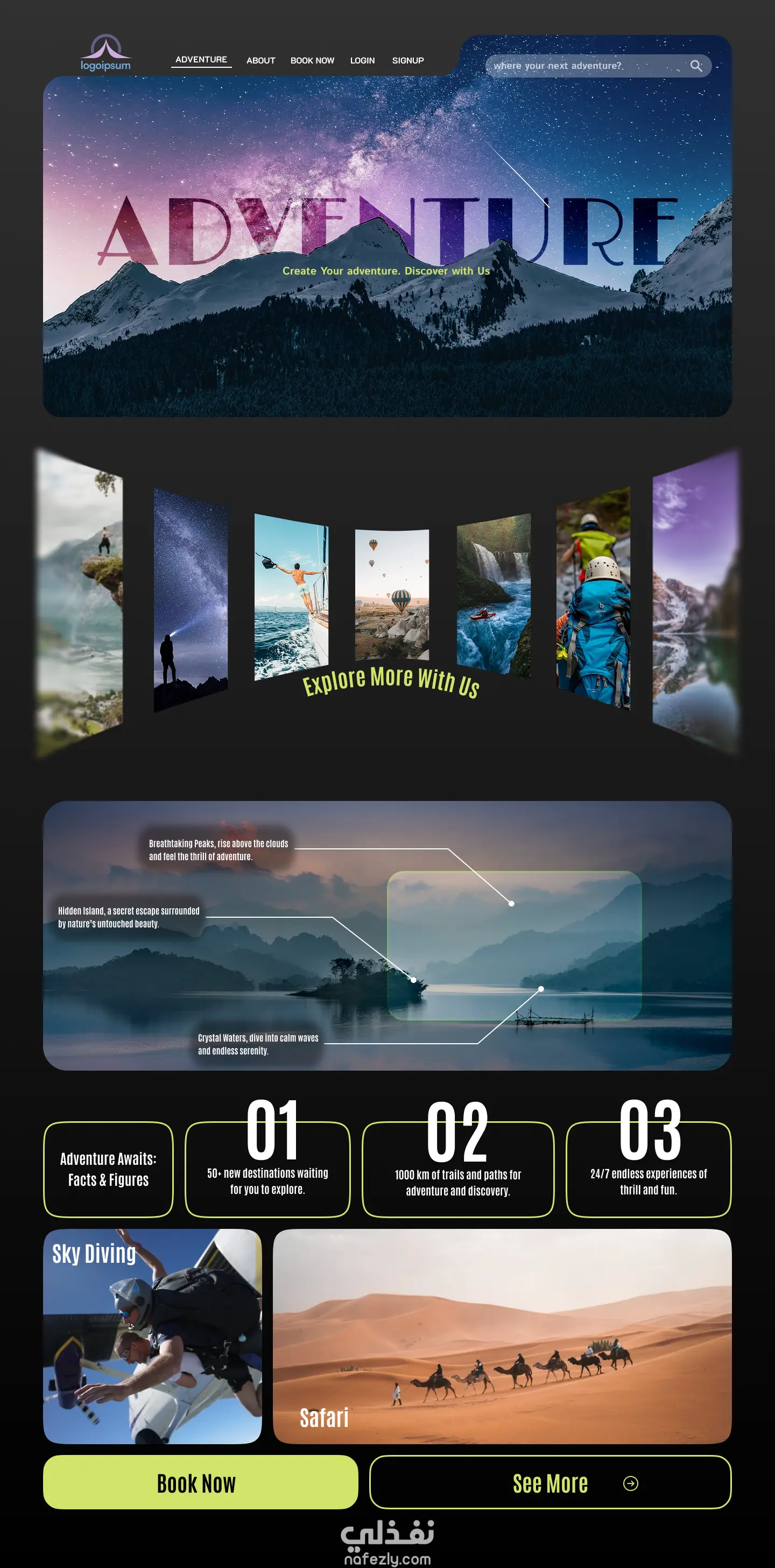 تصميم UI-UX لصفحة ويب مغامرات جذابة