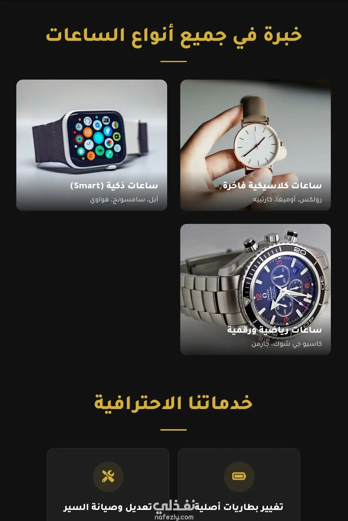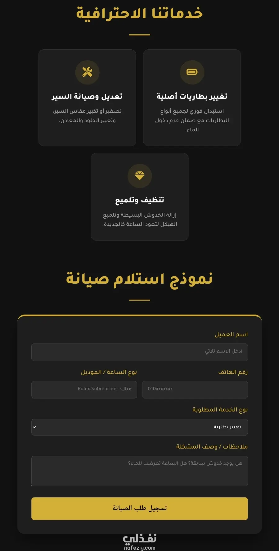 تصميم وتطوير واجهة موقع لخدمات صيانة الساعات