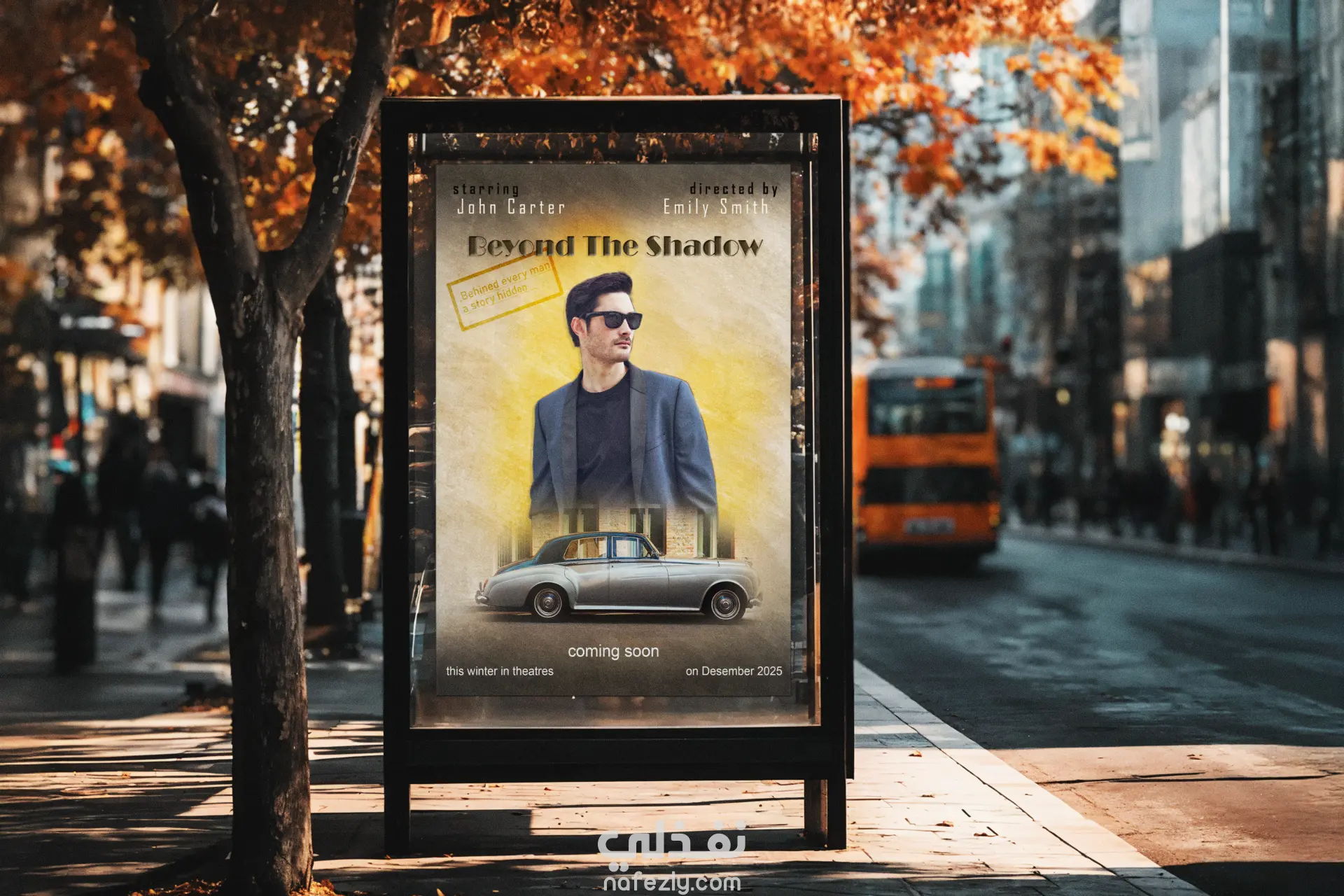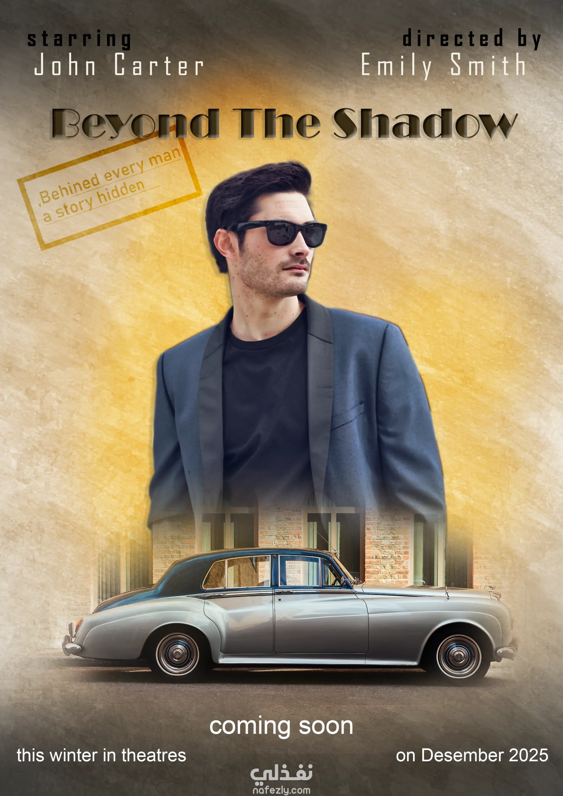بوستر سينمائي درامي لفيلم "Beyond The Shadow"، يجمع بين شخصية رئيسية وسيارة كلاسيكية تعكس أجواء الغموض والقصص المخفية. استخدمت ألوان وإضاءة دافئة لجذب الانتباه وإبراز الفكرة الرئيسية بلمسة احترافية ومناسبة للعروض الدعائية والمنشورات الرقمية.