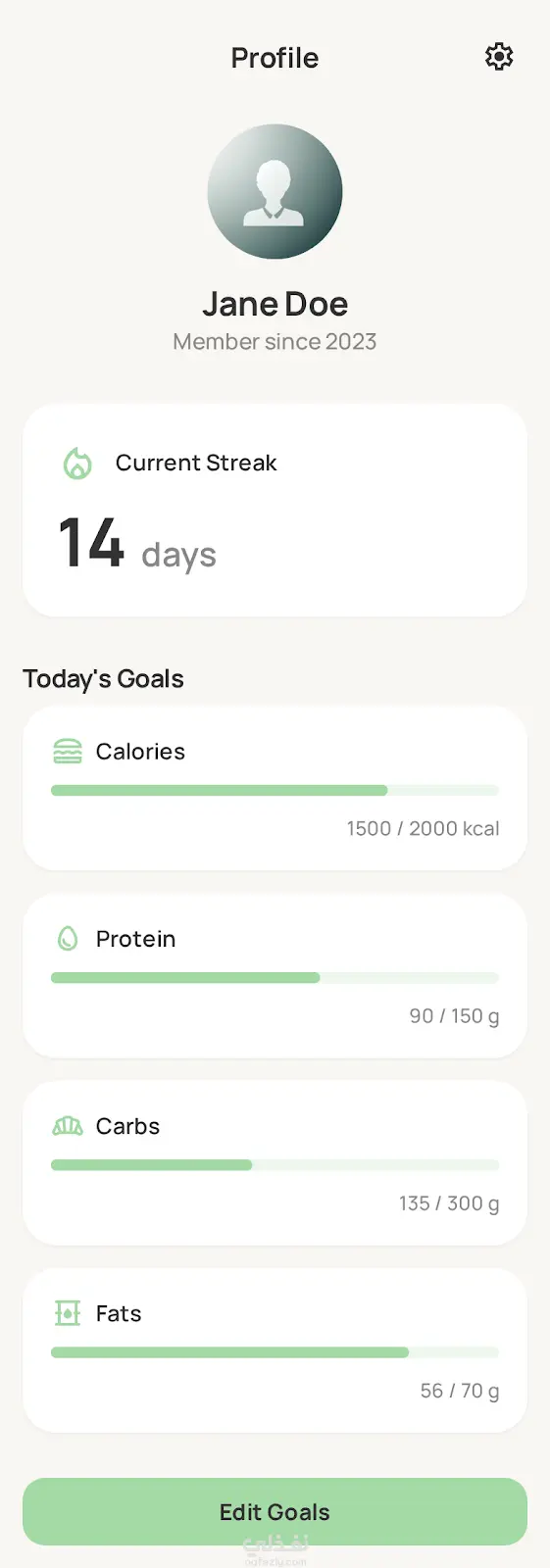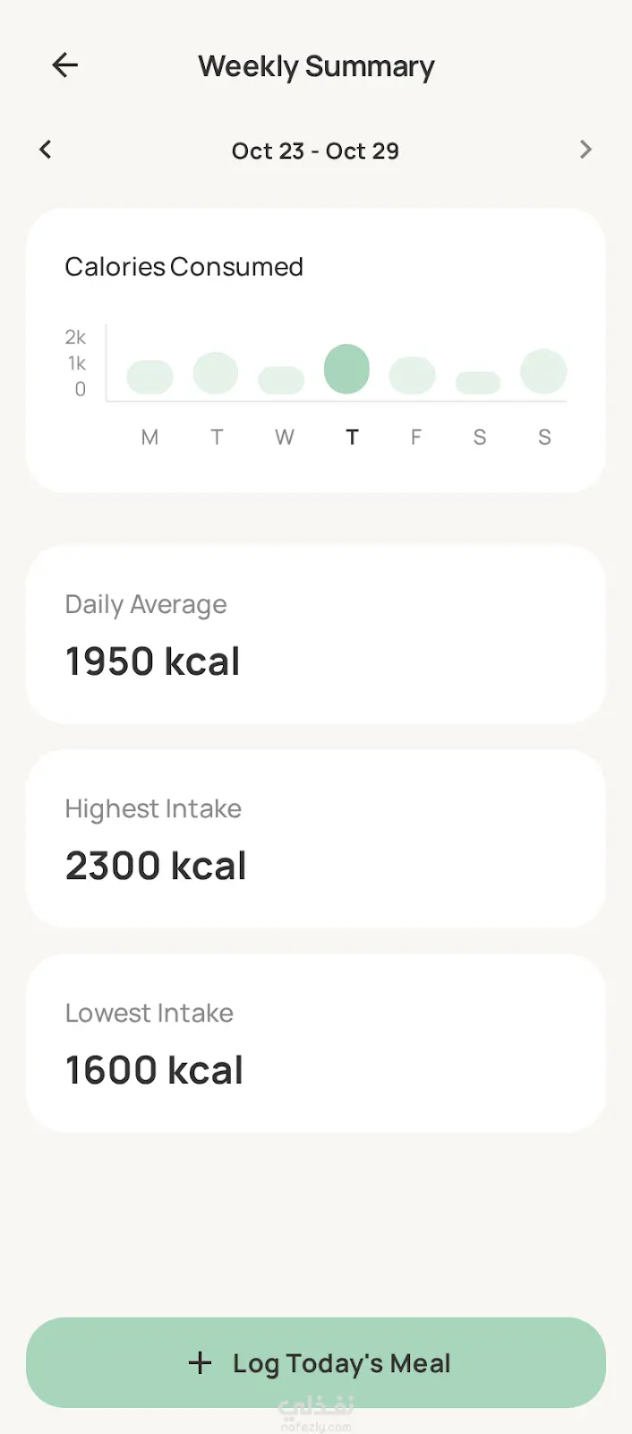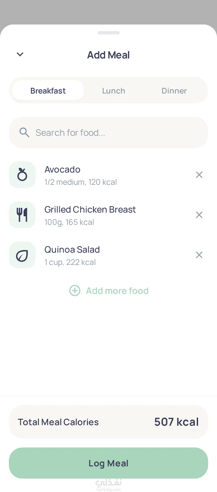 تصميم واجهة مستخدم لتطبيق تتبع السعرات والوجبات (Mobile App UI Design)