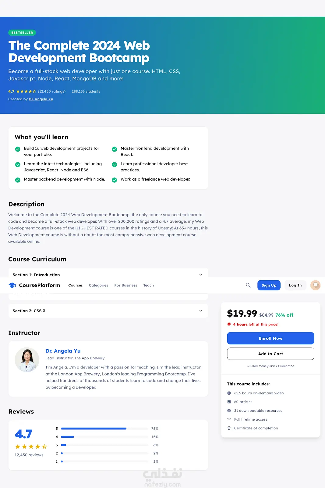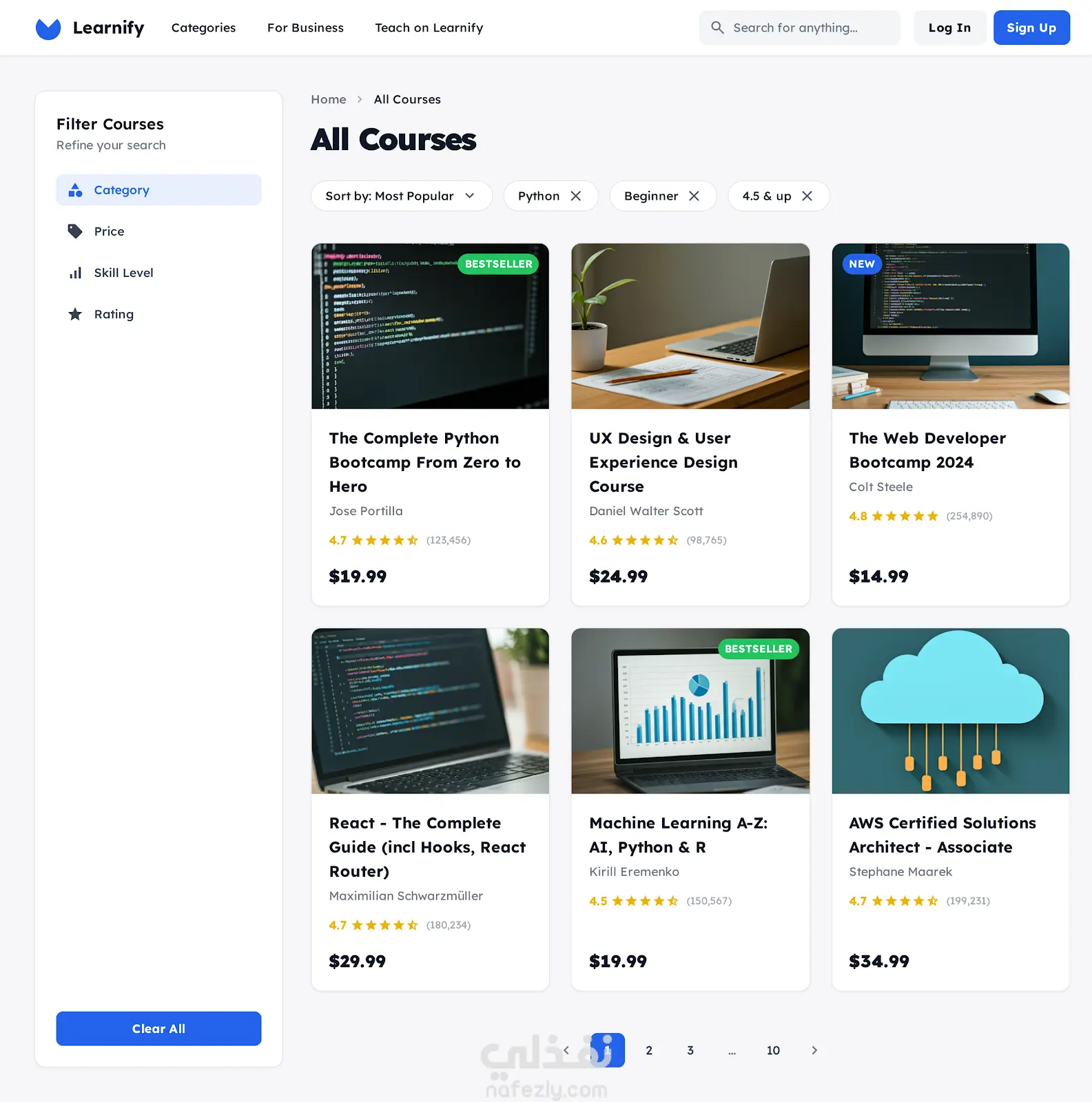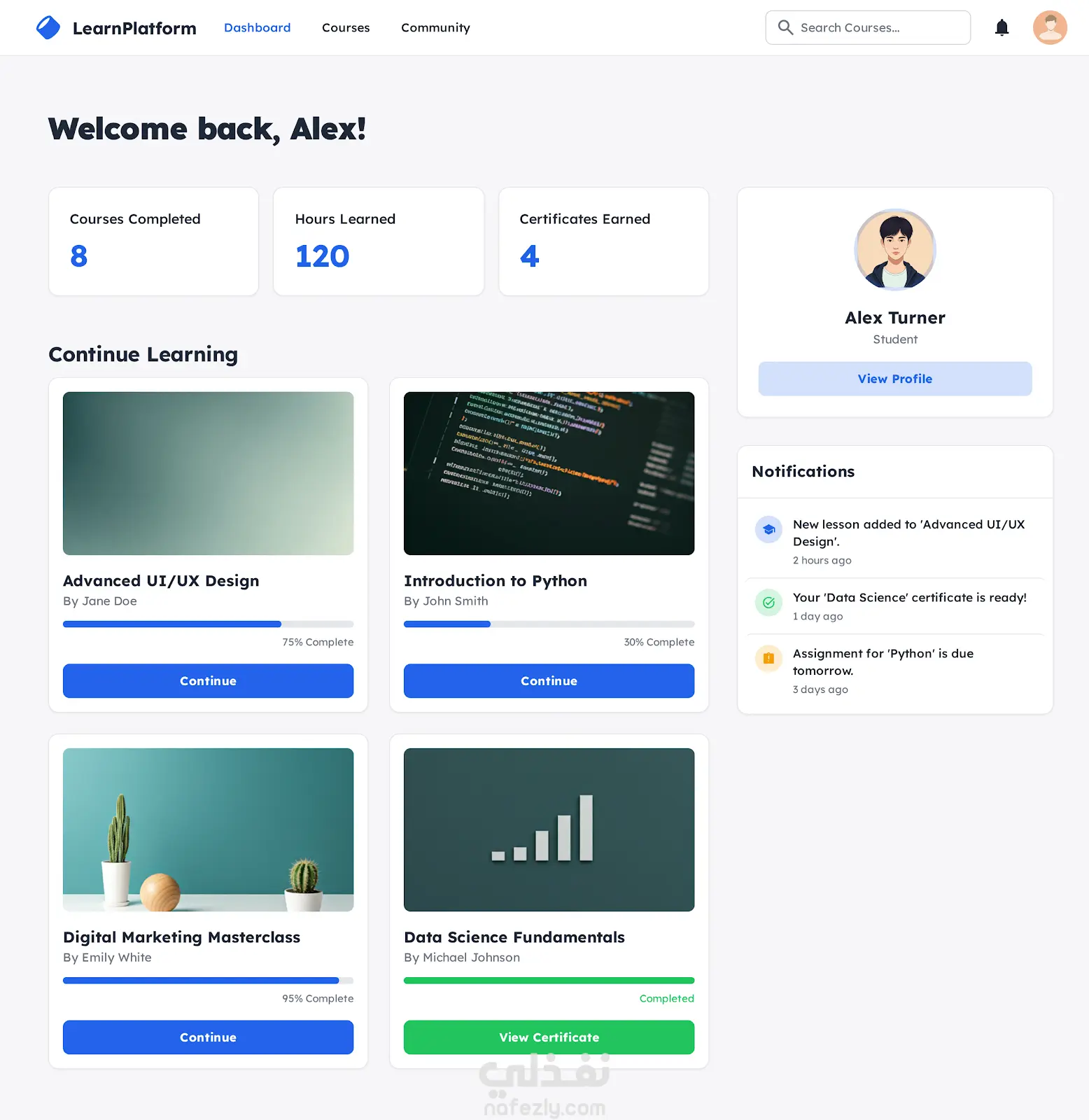 تصميم UI/UX لمنصة كورسات Online احترافية (Learnify)