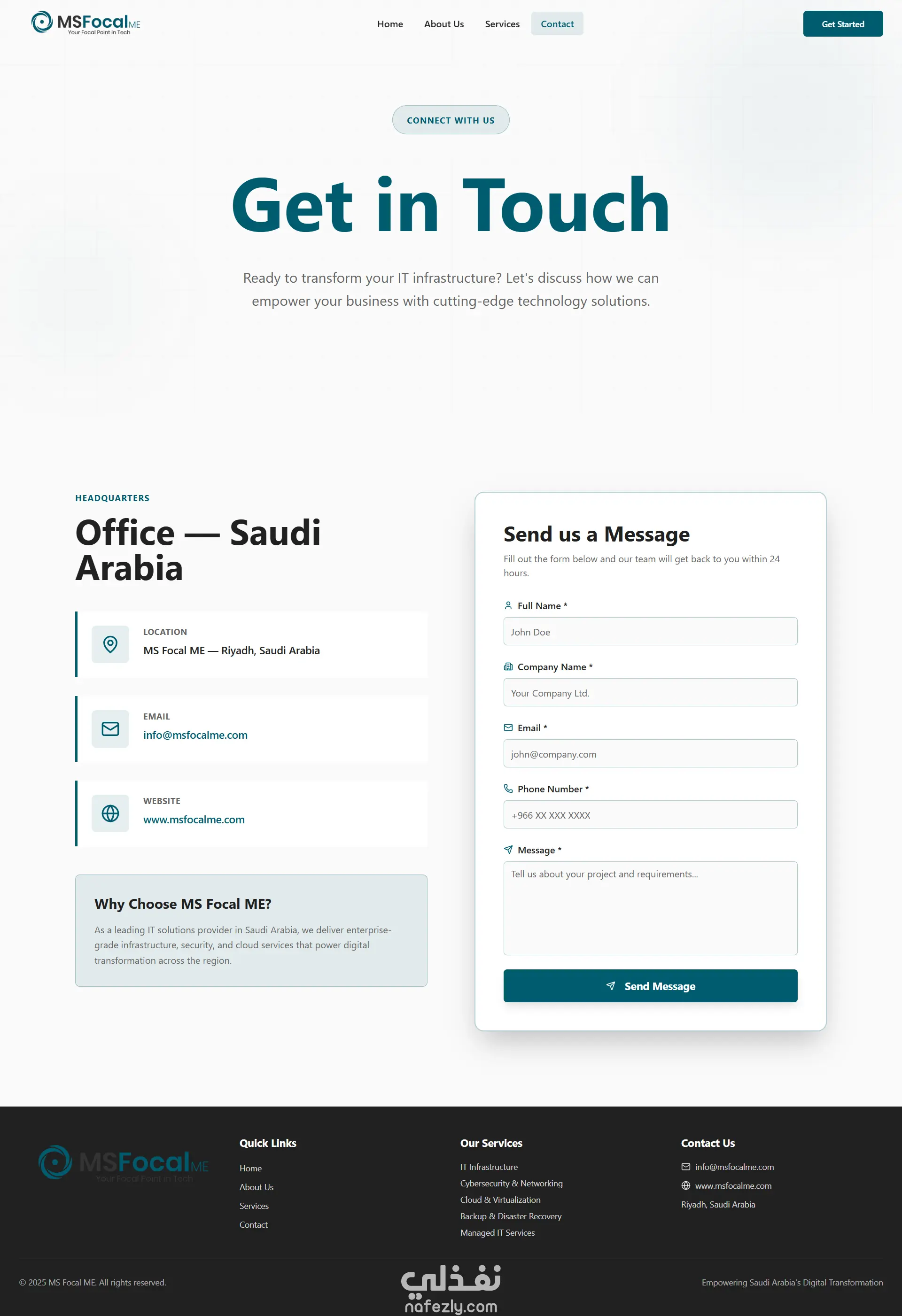تصميم وتطوير موقع MsFocalMe شركة لتقديم خدمات تكنولوجيا المعلومات