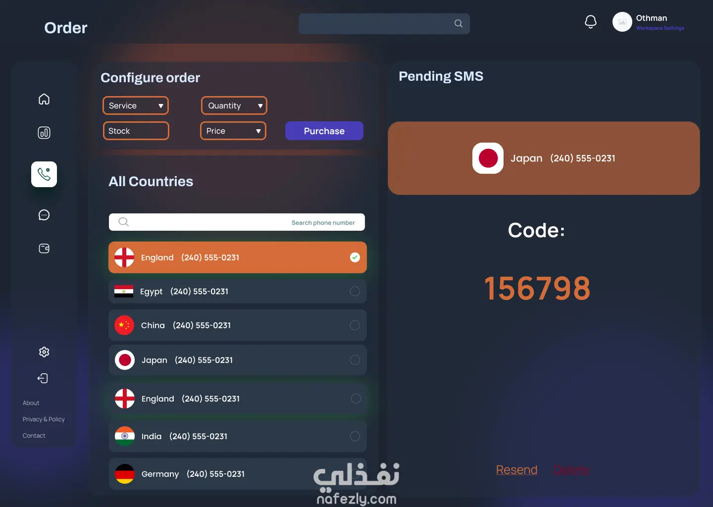 تصميم لوحة تحكم (Dashboard) لموقع تأجير ارقام دولية