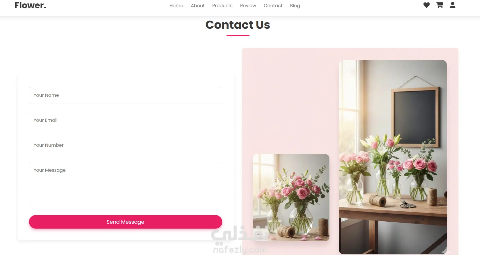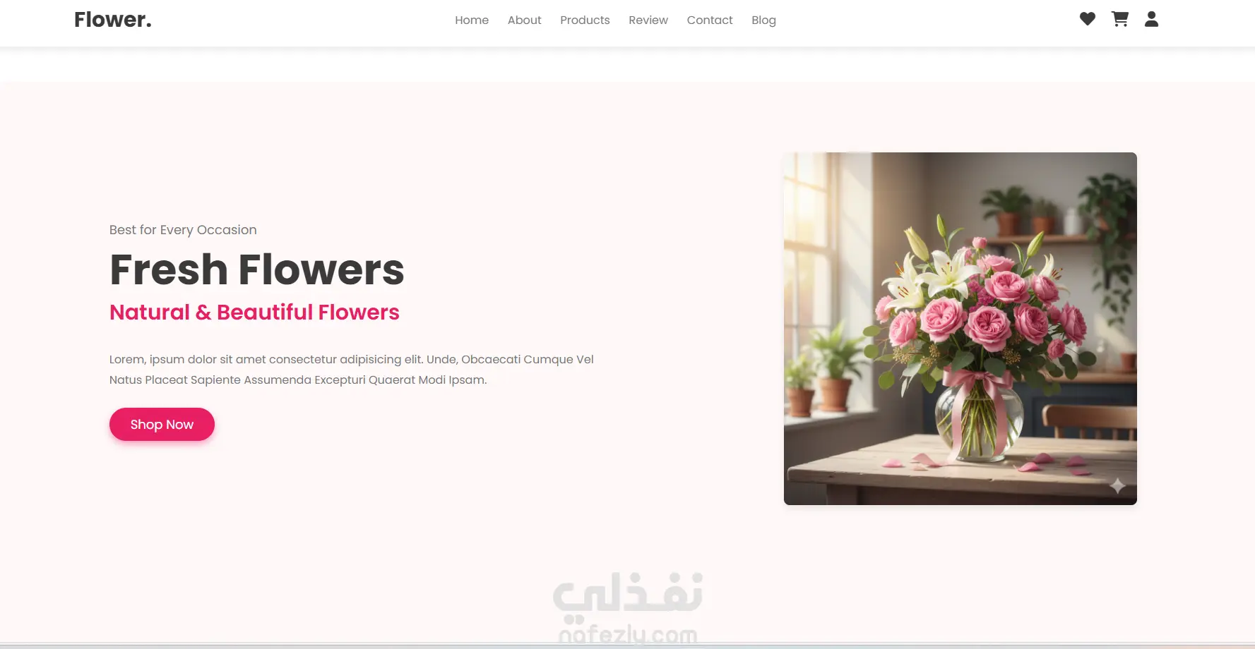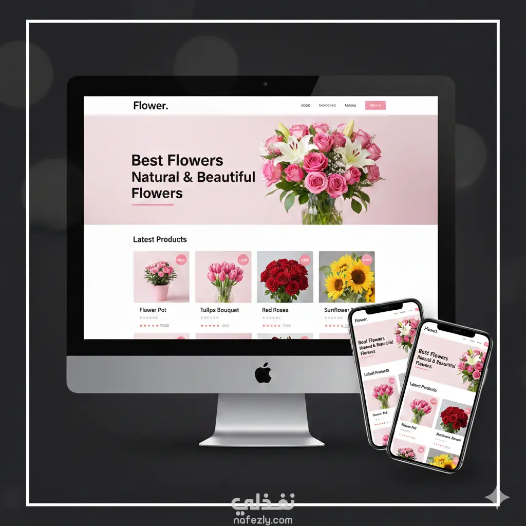 . قسم الترحيب (Hero Section): عرض باقة زهور جذابة مع رسالة تسويقية واضحة.