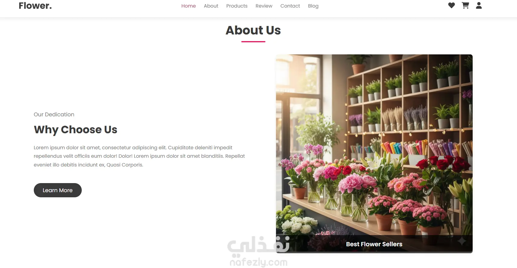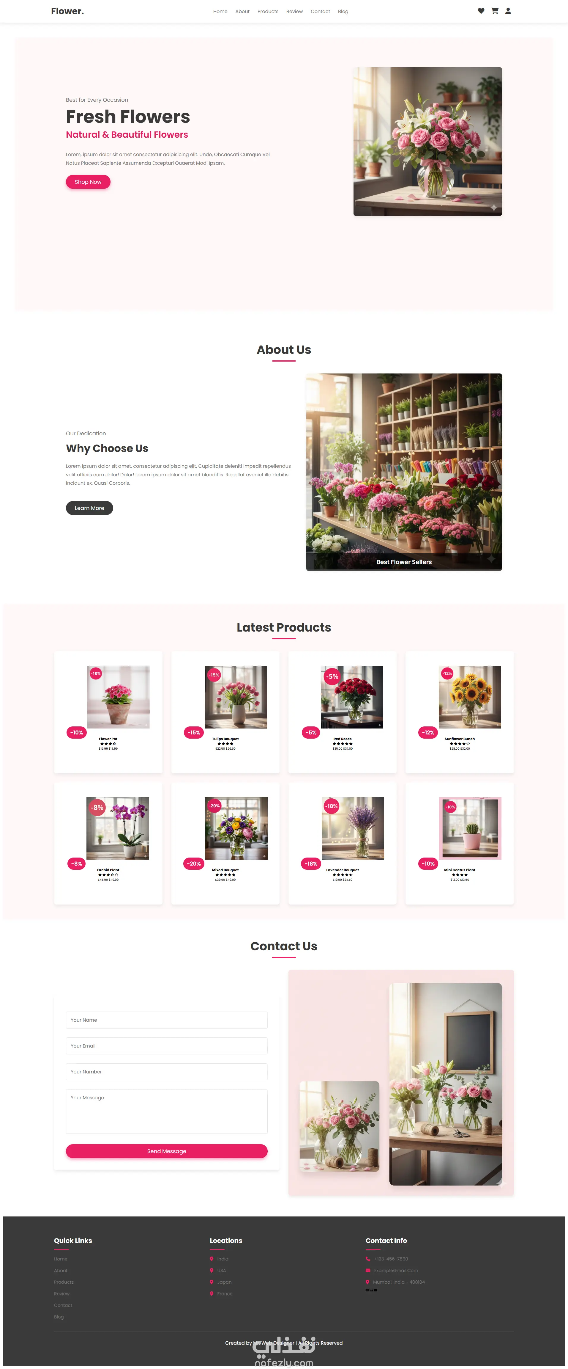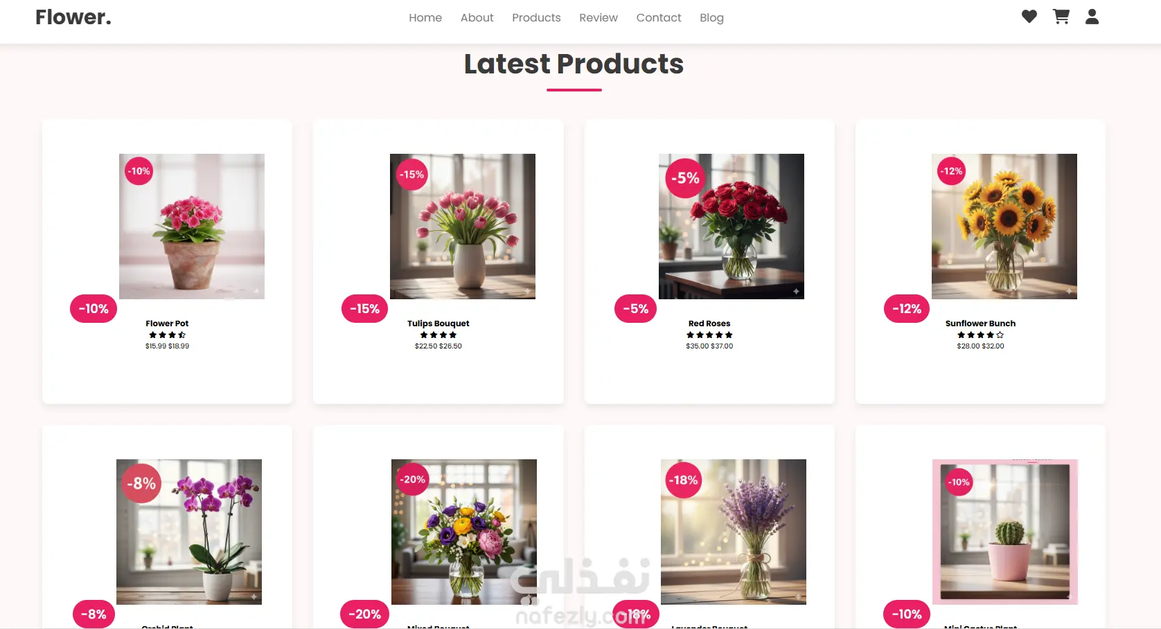 . قسم الترحيب (Hero Section): عرض باقة زهور جذابة مع رسالة تسويقية واضحة.
