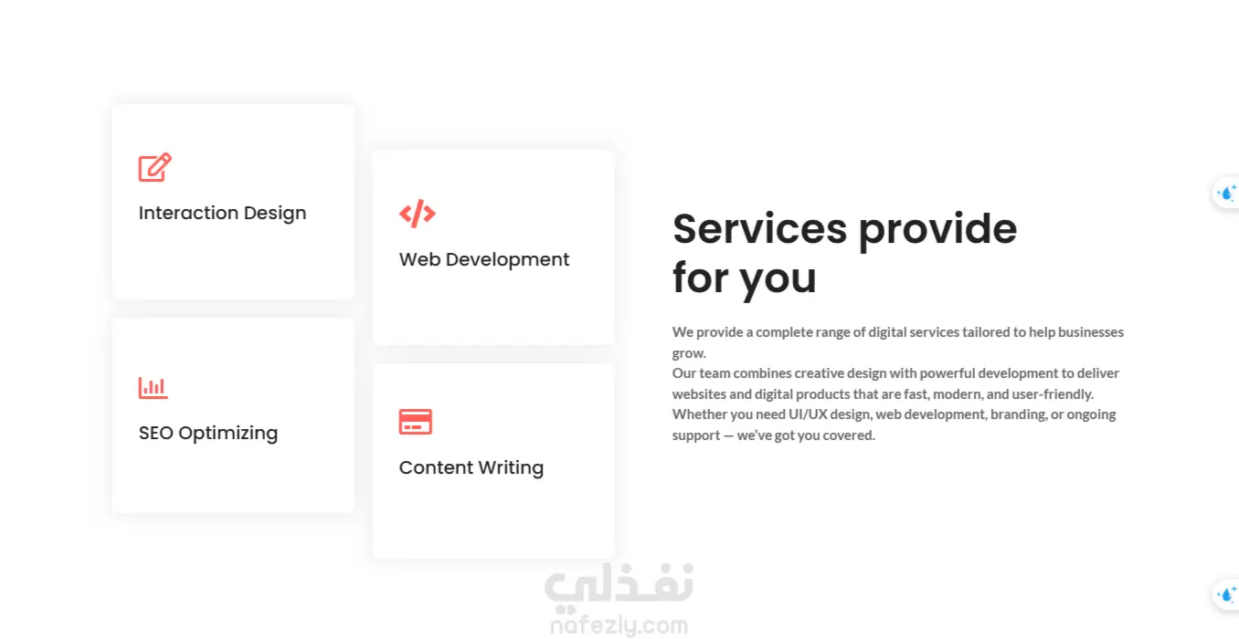 الموقع يشمل الصفحات الأساسية، عرض الخدمات، فريق العمل، آراء العملاء، معرض الأعمال، والتواصل… مع تحسين السرعة وتجربة المستخدم لضمان أفضل انطباع لعملائك.