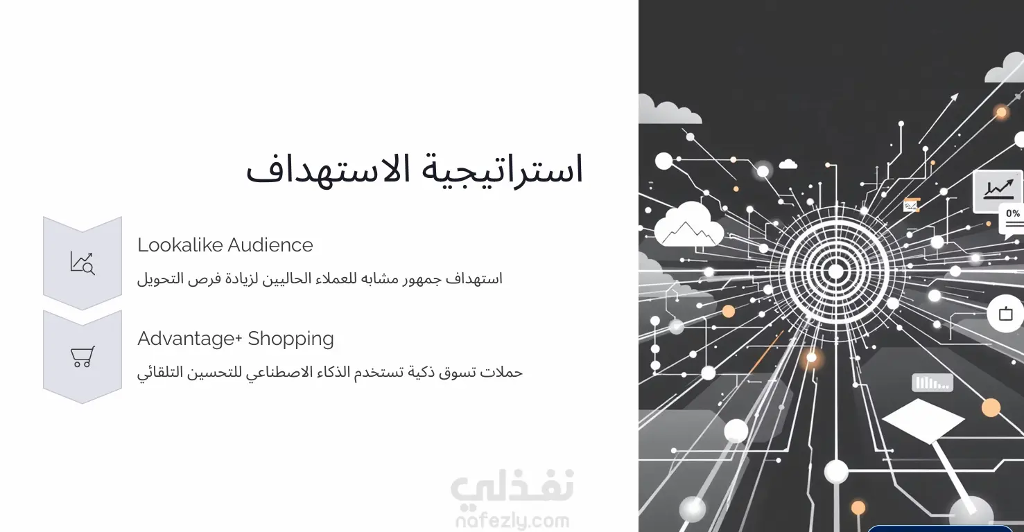 استخدام Advantage+ Shopping Campaign لرفع احتمالية التحويل بناءً على بيانات الذكاء الاصطناعي.
