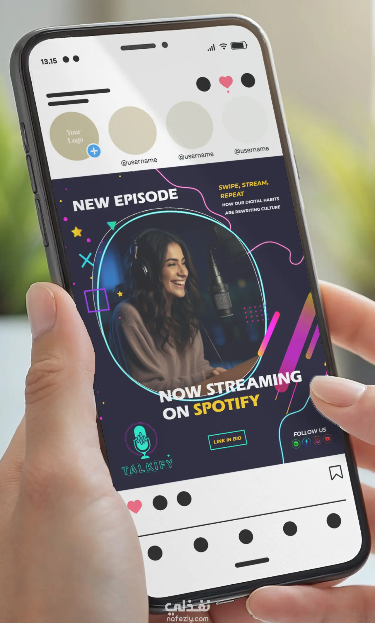 تصميم template للاستخدام على موقع انستجرام بودكاست (Talkify) ايضا تصميم cover art ل نفس البودكاست للاستخدام على موقع Spotify