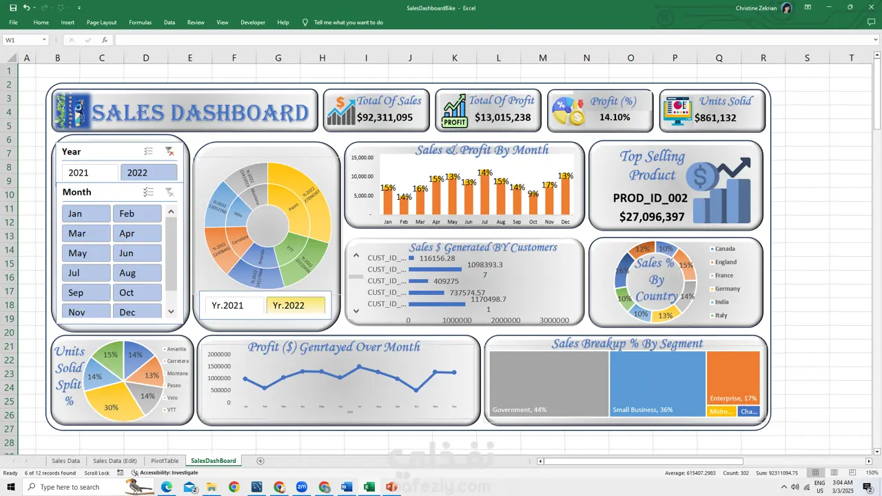 لوحة تحكم المبيعات هي أداة تحليلية متكاملة توفر رؤى واضحة حول أداء المبيعات من خلال تصورات تفاعلية للبيانات. تشمل الميزات الرئيسية عرض إجمالي المبيعات والأرباح، تحليل الاتجاهات الشهرية، تحديد أفضل المنتجات مبيعًا، ومساهمة العملاء في المبيعات. كما توفر تحليلات للتوزيع الجغرافي، تقسيم الوحدات المباعة، وتتبع الأرباح بمرور الوقت، مما يساعد على التخطيط المالي واتخاذ قرارات استراتيجية مستندة إلى البيانات. يمكن تخصيص العرض باستخدام الفلاتر التفاعلية، ويسهل البدء باستخدام ملف Excel المرفق. كما نرحب بالمساهمات لتحسين وتطوير الميزات.