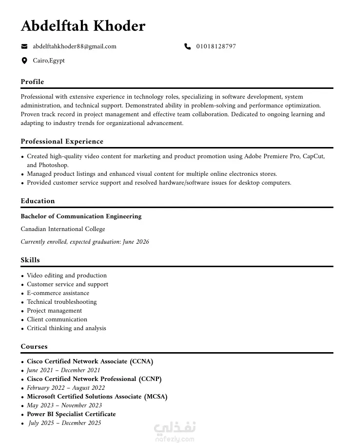 سأقوم بإعداد سيرة ذاتية احترافية مصممة بشكل جذاب ومنظم، تعكس خبراتك ومهاراتك بطريقة تعزز فرص قبولك في الوظائف. أعمل على تقديم CV يناسب المعايير العالمية ويبرز نقاط قوتك بشكل واضح ودقيق، مع الاهتمام بأدق التفاصيل في التنسيق والصياغة. تشمل الخدمة: كتابة وصياغة السيرة الذاتية باللغة العربية أو الإنجليزية باحترافية عالية. إعادة ترتيب الخبرات والمهارات بما يتناسب مع المجال الوظيفي المستهدف. استخدام تصميمات حديثة ومنظمة متوافقة مع ATS (أنظمة تتبع المتقدمين). إضافة قسم الاحتراف المهني (Professional Summary) بشكل جذاب ومقنع. تنسيق كل الأقسام: الخبرات – التعليم – المهارات – الدورات – الإنجازات – البيانات الشخصية. تحسين اللغة والصياغة وإزالة أي أخطاء لغوية أو تكرار غير ضروري. إمكانية التعديل حتى الوصول لصيغة تُرضيك 100٪. مميزات الخدمة: سيرة ذاتية واضحة وسهلة القراءة. تصميم مرن يناسب مختلف الوظائف والمجالات. تسليم في الوقت المحدد وبجودة عالية. تعامل احترافي وسرعة في الرد والتنفيذ. ملفات التسليم: ملف PDF جاهز للتقديم. ملف Word قابل للتعديل (عند الطلب)