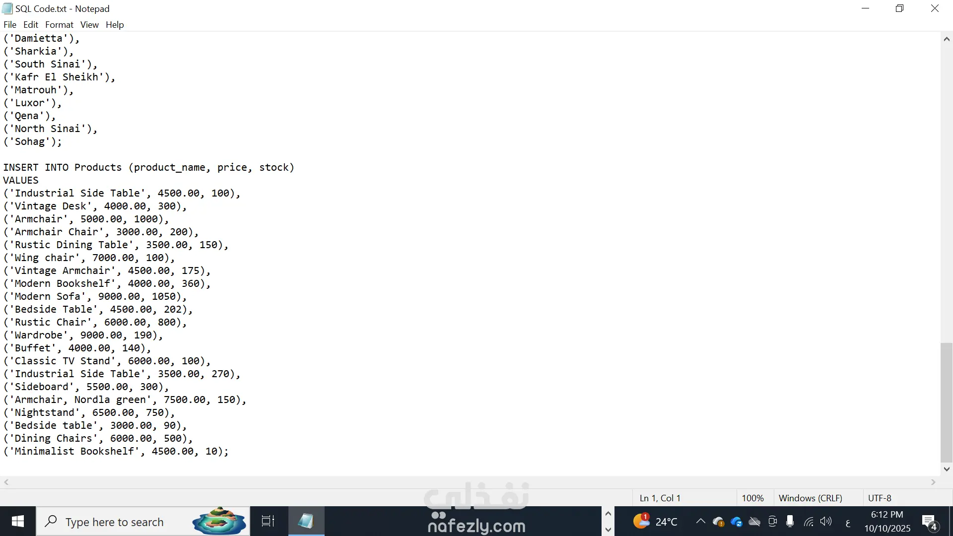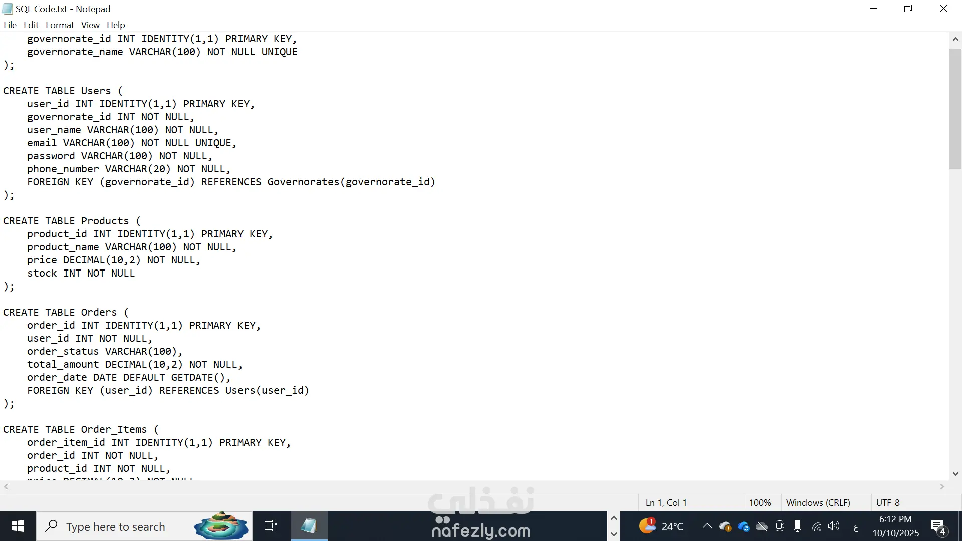 كتابة أوامر SQL للتنفيذ (CREATE – INSERT – UPDATE – SELECT).