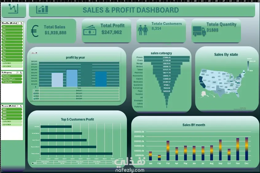مشروع لوحة معلومات المبيعات والأرباح – تحليل بيانات Excelيسعدني أن أشارككم أحدث مشاريعي – لوحة معلومات تفاعلية للمبيعات والأرباح تم إنشاؤها باستخدام Microsoft Excel لتحليل وتصور الرؤى التجارية الرئيسية.📊 أبرز ميزات لوحة المعلومات:الأرباح حسب السنة: تصور اتجاهات الأرباح السنوية لمراقبة نمو الأعمال.المبيعات حسب الفئة الفرعية: مقارنة الفئات الفرعية للمنتجات لتحديد الأكثر ربحية.عدد العملاء حسب السنة: عرض نمو العملاء على مدى عدة سنوات.المبيعات حسب الولاية: عرض الأداء الإقليمي في مختلف الولايات.أعلى 5 عملاء من حيث الربح: تسليط الضوء على أهم العملاء الذين يساهمون في الربح الإجمالي.المبيعات حسب الشهر: توضيح التغيرات الشهرية لتحديد فترات ذروة المبيعات.إجمالي العملاء وإجمالي الكمية: تلخيص مؤشرات الأداء الرئيسية الأساسية للحصول على نظرة عامة سريعة.🧩 الأدوات والمهارات المستخدمة:Microsoft Excel (الجداول المحورية، أدوات التقطيع، المخططات، التنسيق الشرطي)تقنيات تنظيف البيانات وتنظيمها وتصورها🎯 تساعد لوحة المعلومات هذه على تصور أداء الشركة بوضوح