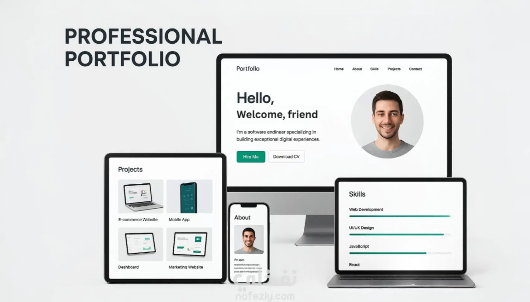 هل تحتاج إلى بورتفوليو احترافي يعرض مهاراتك وأعمالك بطريقة أنيقة تجذب العملاء وأصحاب العمل؟