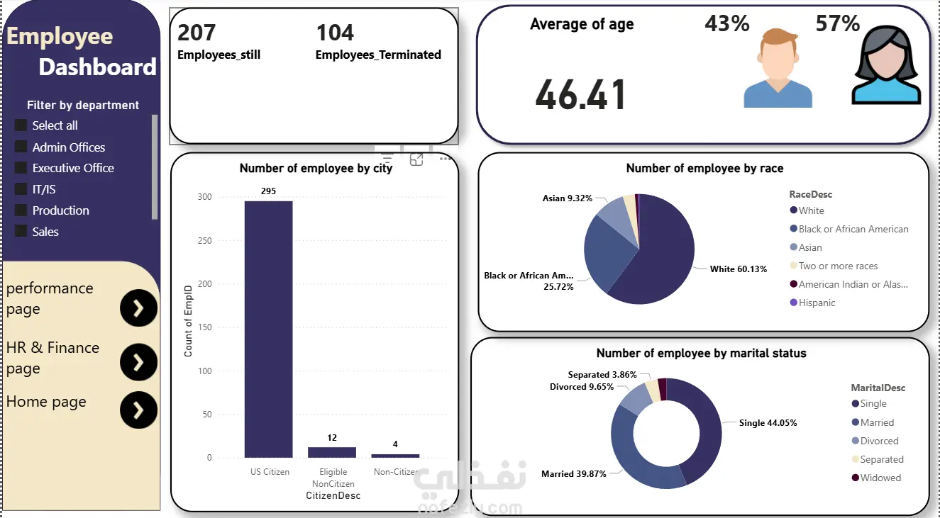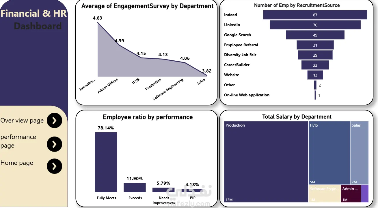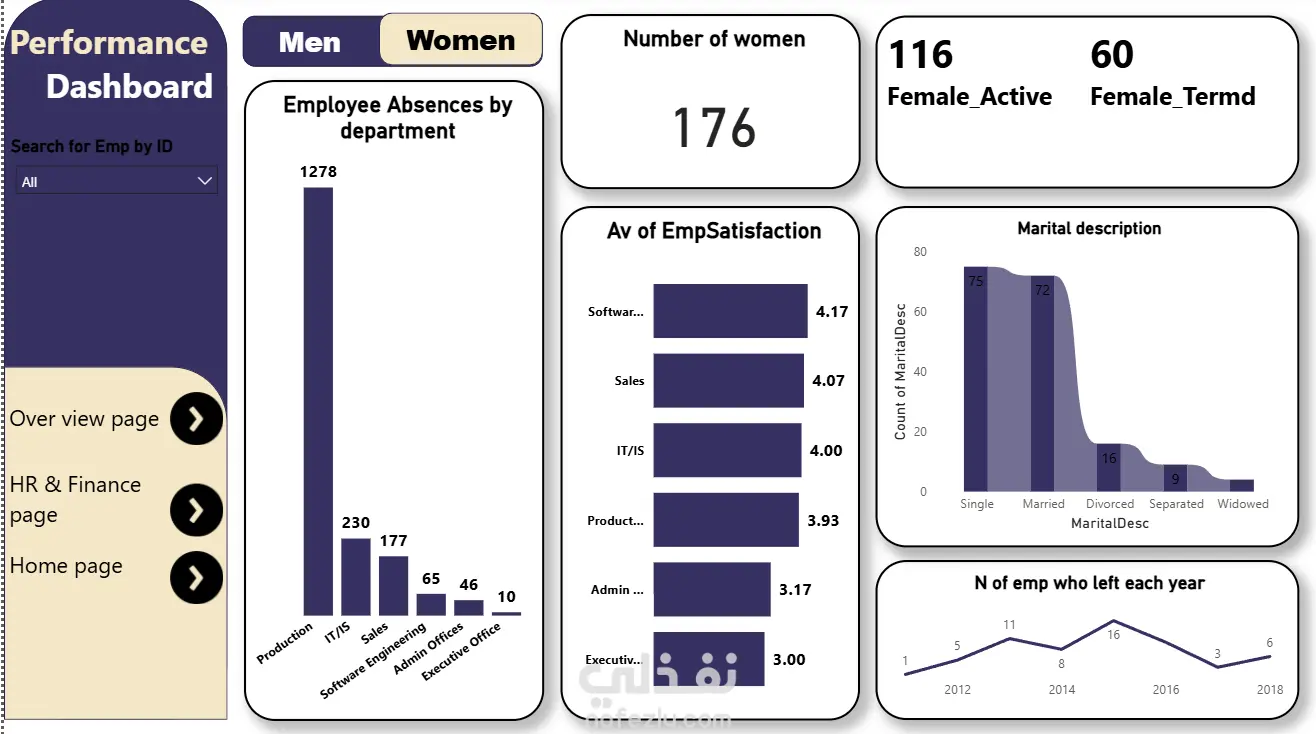 قمت بتحليل بيانات الموارد البشرية الخاصة بالشركة باستخدام أدوات التحليل (Excel – Power Query – Power BI)، وركّزت على أهم الجوانب المرتبطة بالأداء والموظفين. بعد تنظيف الداتا ومعالجة القيم المفقودة، قدرت أستخرج مجموعة من المؤشرات المهمة: أهم النتائج اللي توصّلت لها: تحليل معدل دوران الموظفين (Turnover Rate) وتحديد الأقسام اللي معدل خروج الموظفين فيها أعلى من الطبيعي. التعرف على نسب الغياب والتأخير وربطها بالأقسام والمديرين لمعرفة مصادر المشكلة. قياس مستوى الإنتاجية من خلال مقارنة الأداء بالتقييمات السنوية وساعات العمل الفعلية. تحديد الأقسام اللي عندها عجز في المهارات واقتراح مسارات تدريب مناسبة. تحليل تكلفة الموظف (Employee Cost Analysis) وتوزيع الرواتب على كل قسم لمعرفة العبء المالي. إنشاء خريطة توضح توزيع الموظفين حسب العمر والخبرة والمؤهل ودراسة تأثيرها على الأداء. مقارنة عدد الموظفين المطلوبين مقابل المتاحين لتحديد نقص العمالة أو فائضها.
