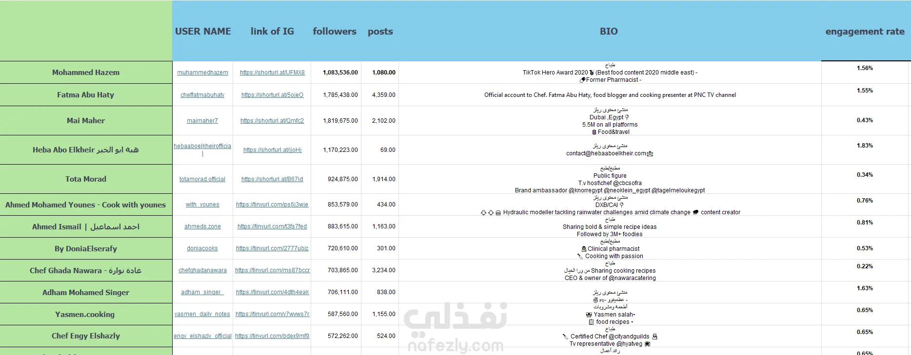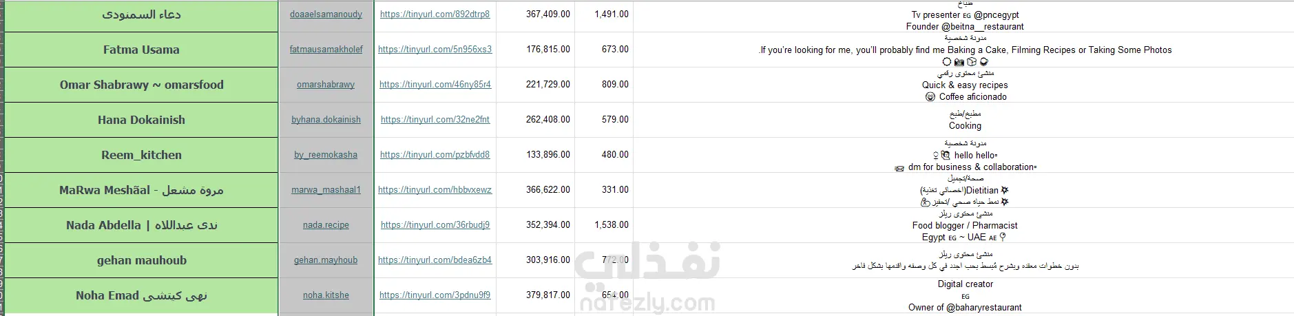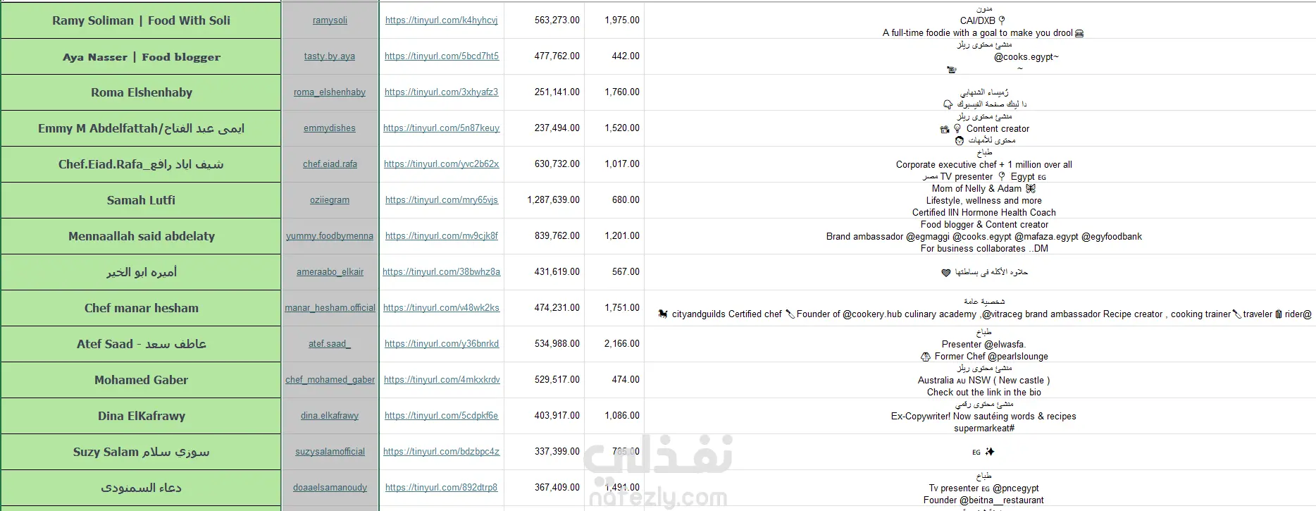 تحليل المنافسين فى مجال الطبخ فى مصر