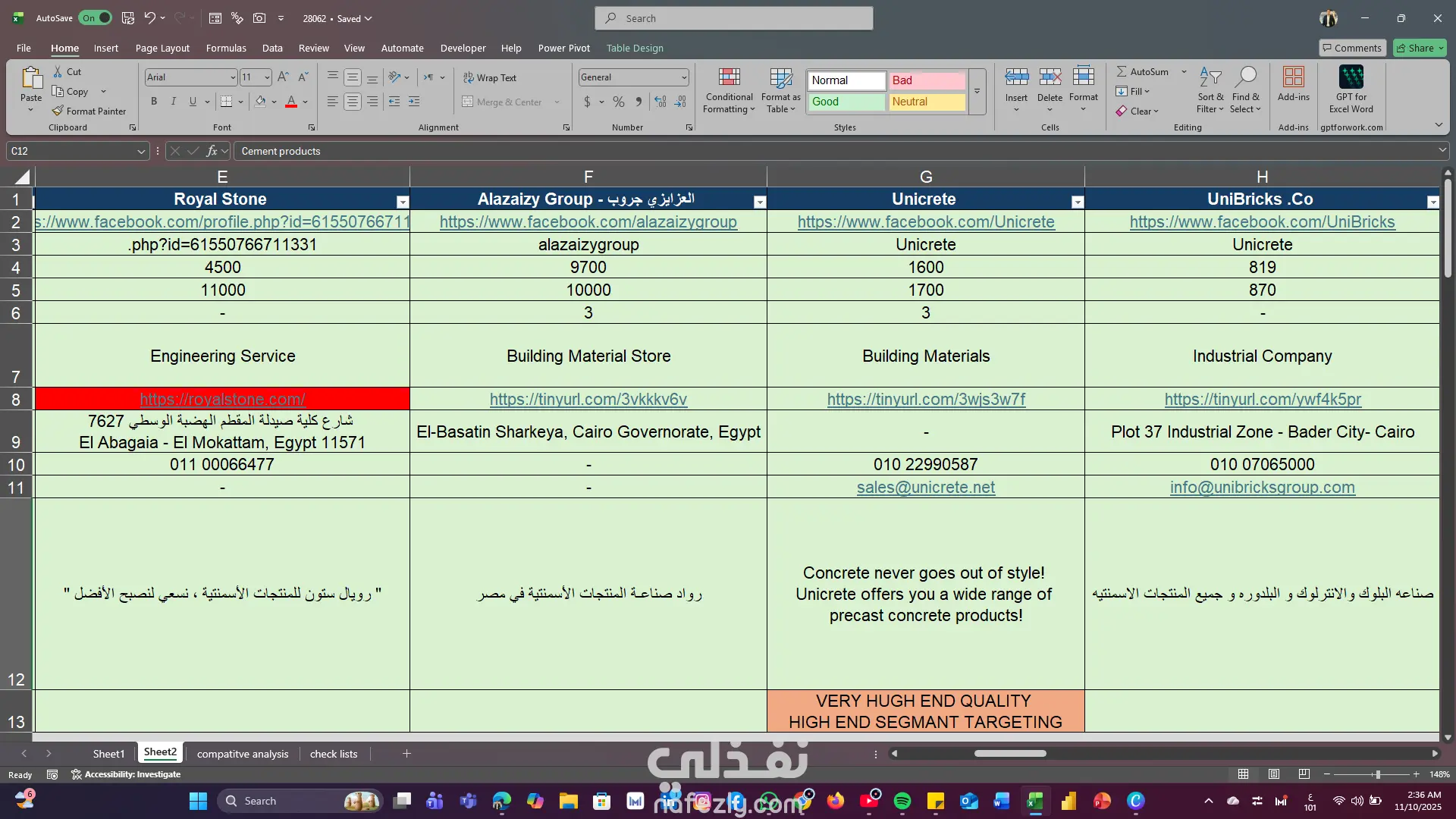 السلام عليكم هل حسّيت إن المنافسين على السوشيال ميديا دايمًا سابقينك؟ بيجيبوا تفاعل أكبر وجمهورهم بيتوسع، وانت مش فاهم السبب؟ أنا عايش الإحساس ده وشوفتُه بعيني خلال شغلي مع فرق تسويق زي IEEE MUST SB وMUST Life وVEP. علشان كده أقدّم خدمة تحليل المنافسين على السوشيال ميديا — خدمة مركّزة ومفصّلة تساعدك تعرف مين المنافسين الأقوى، إيه الاستراتيجيات الناجحة، وإيه نقاط الضعف اللي تقدر تستغلها لصالحك. هتستلم تقرير شامل ومرتب مع توصيات عملية تطبقها فورًا. إزاي بنشتغل: ابعت روابط المنافسين، أعمل تحليل للمحتوى والتفاعل والجمهور، وأقدملك تقرير مفصّل. لو حابب، نعمل جلسة Zoom لشرح النتائج. الخدمة لأي صفحة أو مشروع عايز يبني استراتيجية واضحة وينمو فعليًا.